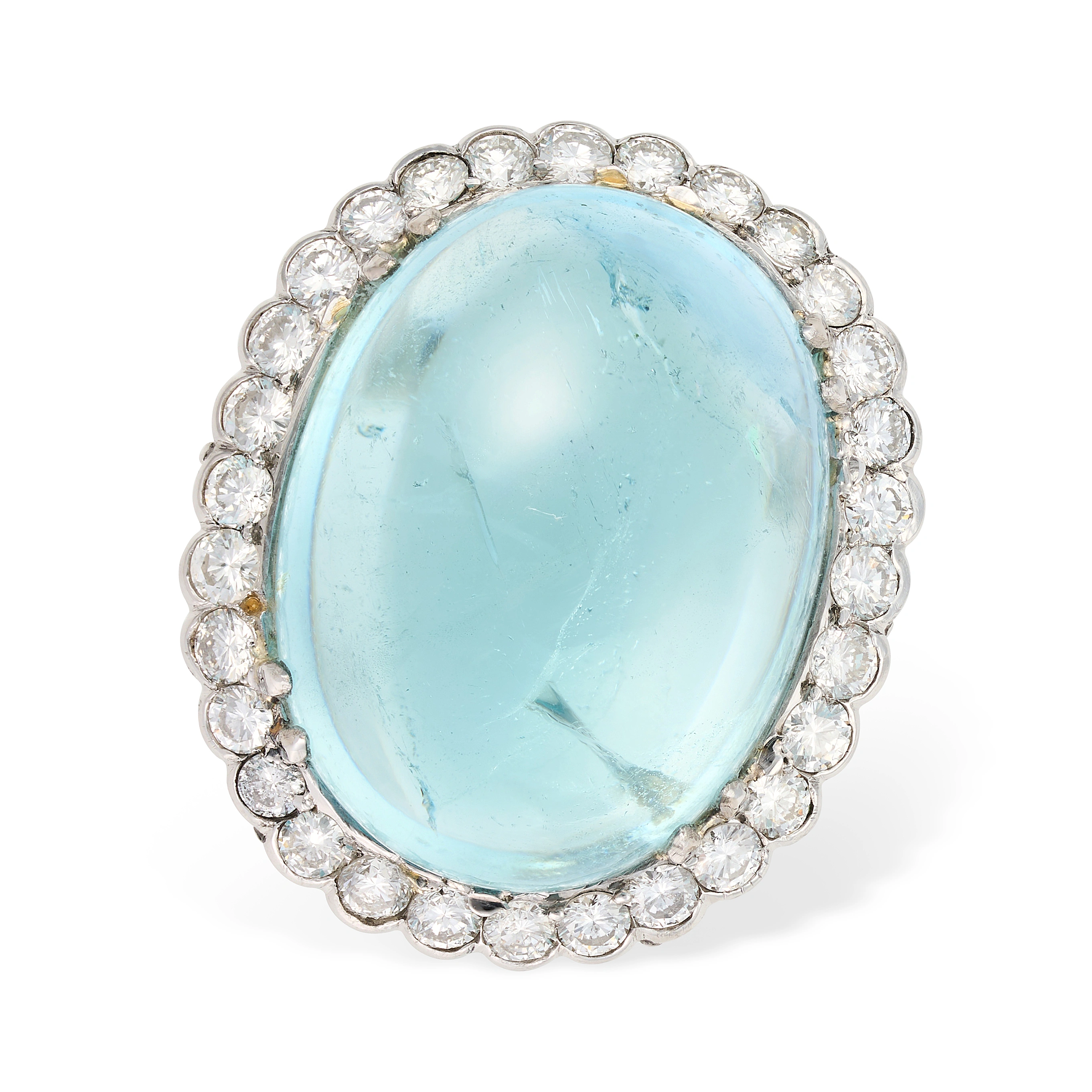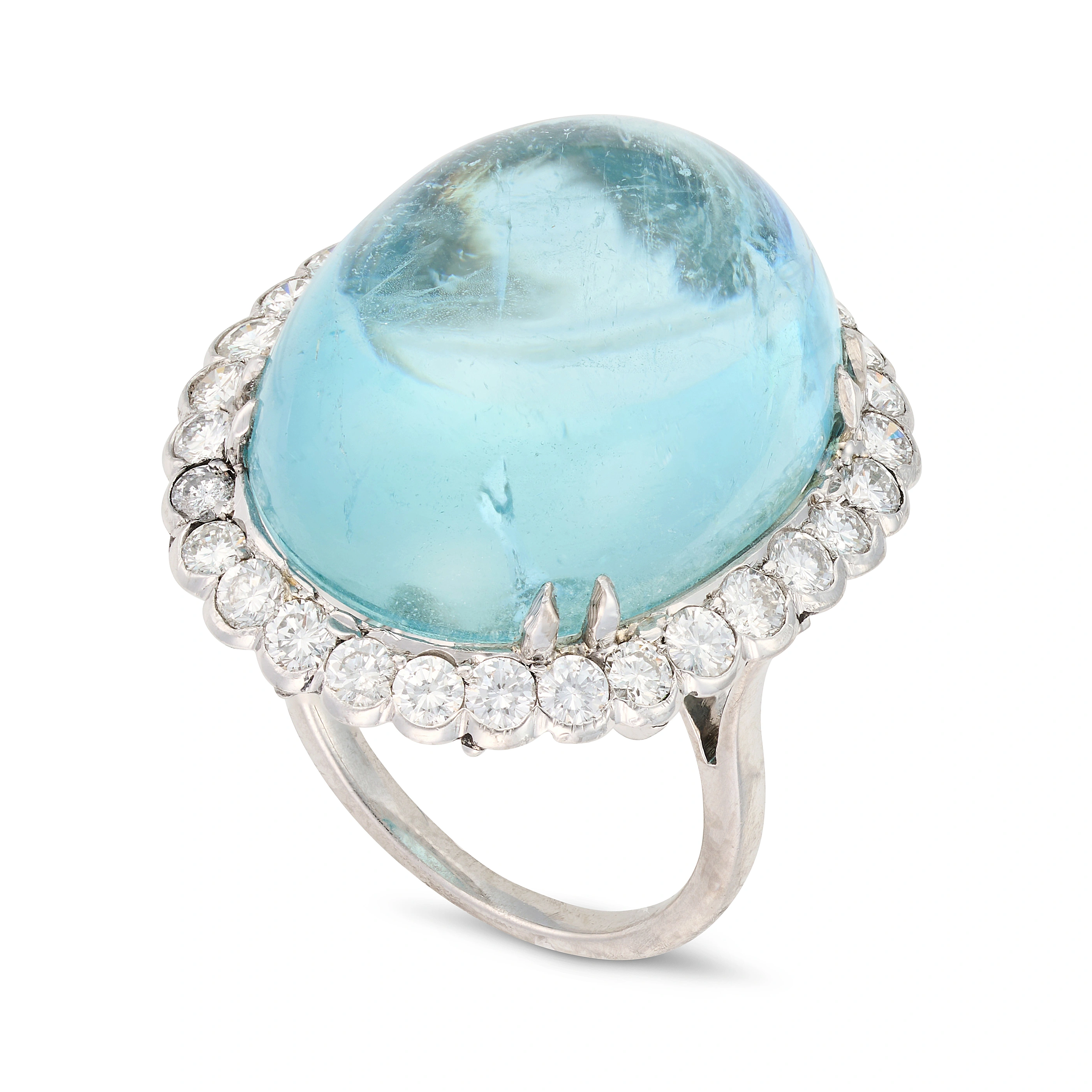 A LARGE AQUAMARINE AND DIAMOND DRESS RING set with ...