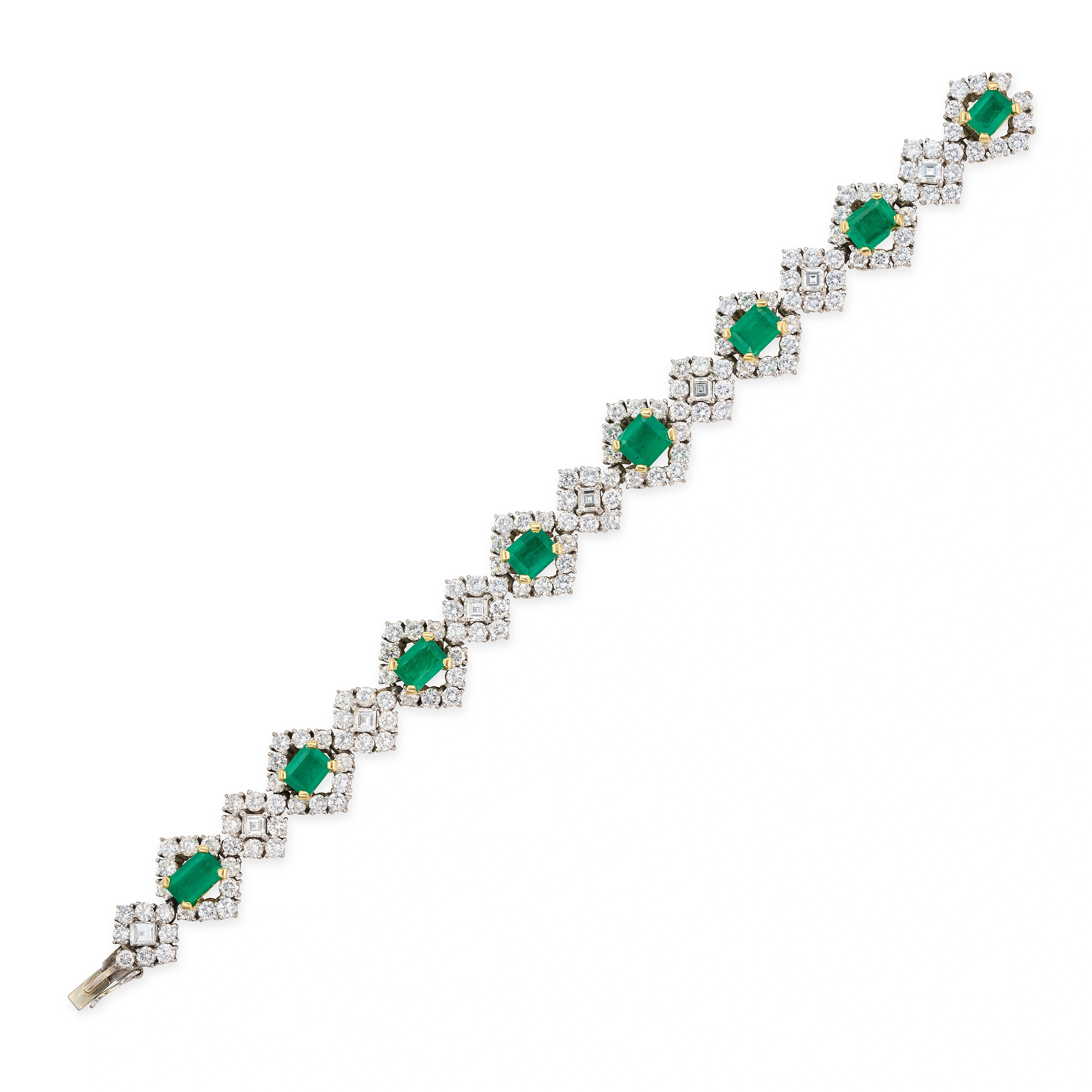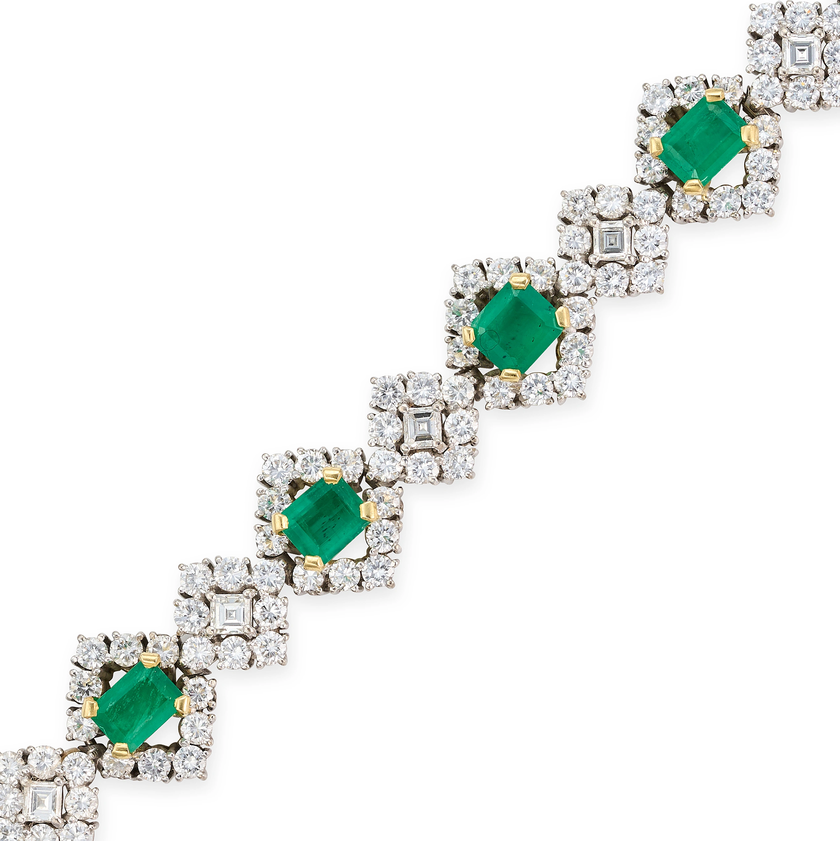 A FINE EMERALD AND DIAMOND BRACELET comprising a r ...