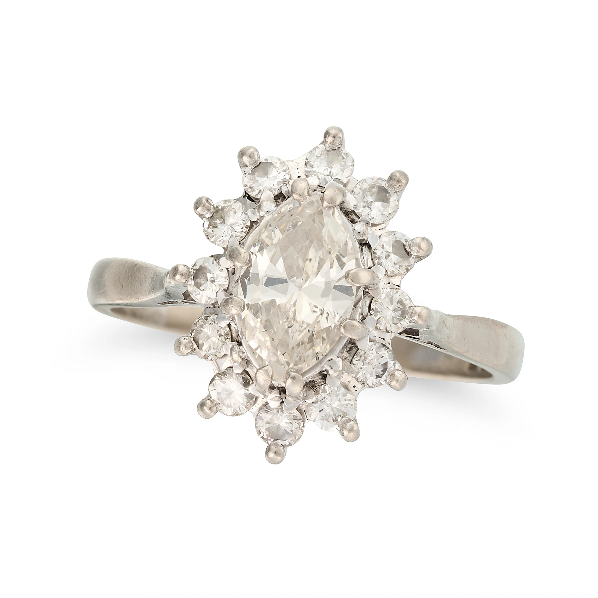 A DIAMOND CLUSTER RING in 18ct white gold, set wit ...