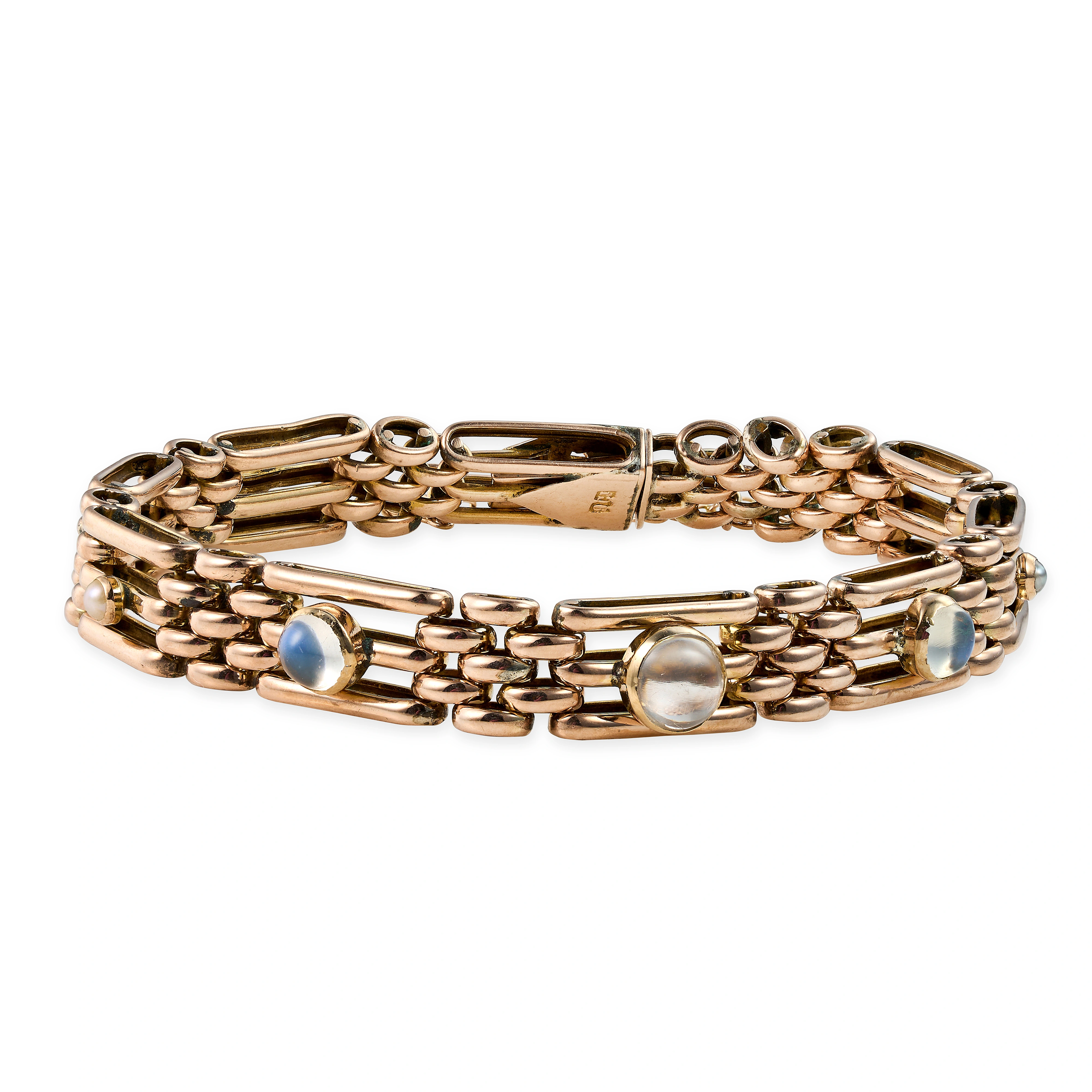 A VINTAGE MOONSTONE AND PEARL GATE LINK BRACELET i ...