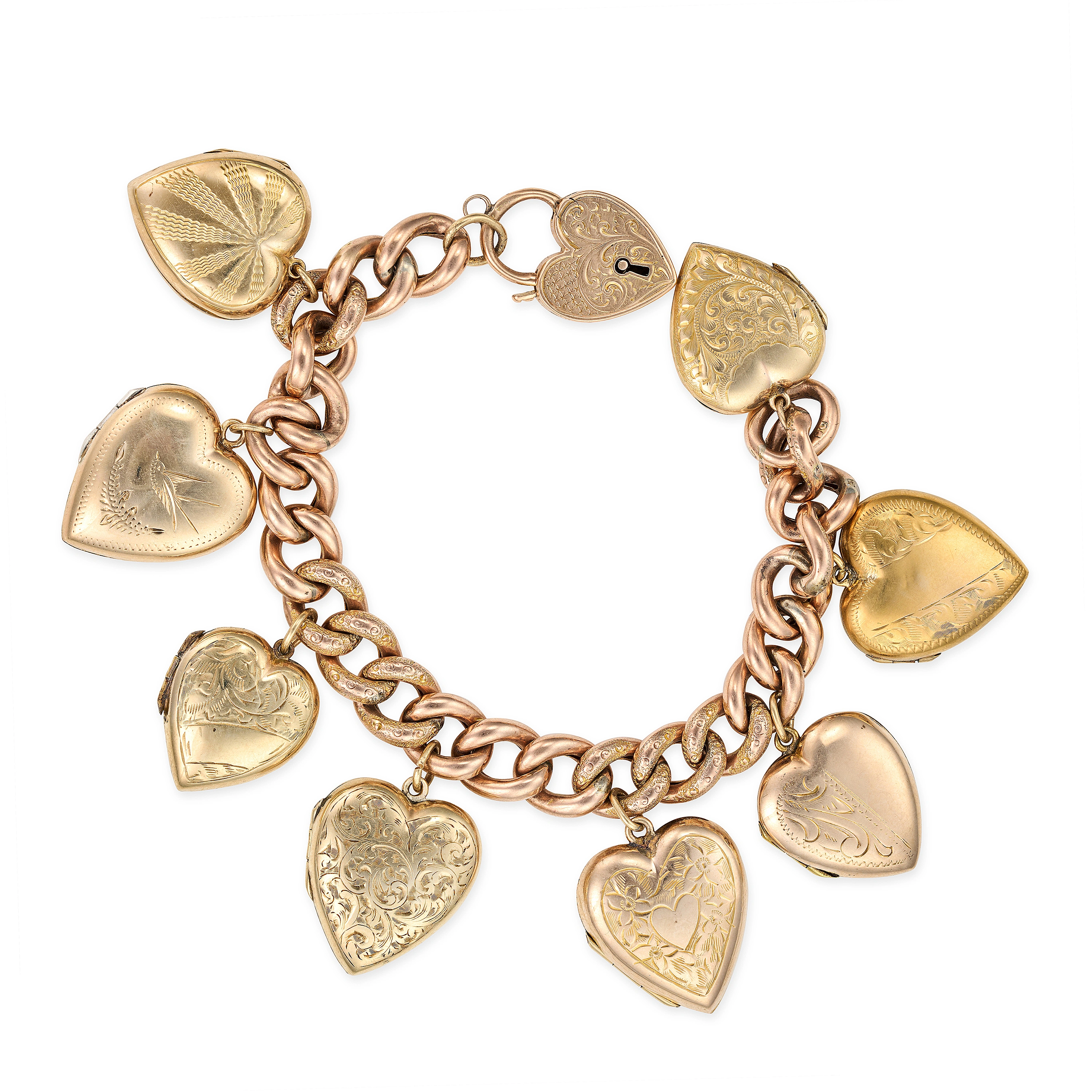 AN ANTIQUE GOLD HEART LOCKET CHARM BRACELET in yel ...