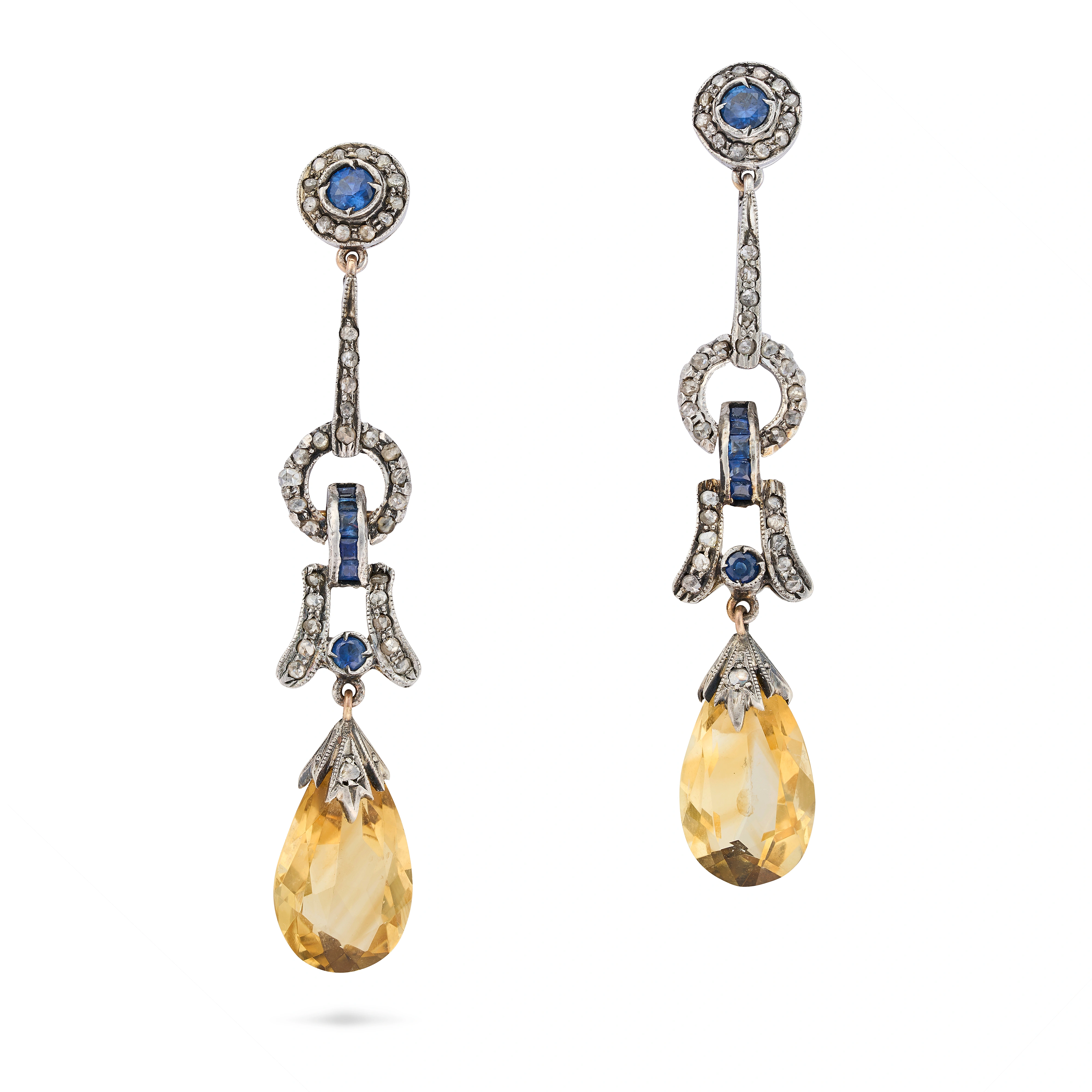 A PAIR OF VINTAGE CITRINE, SAPPHIRE AND DIAMOND DR ...