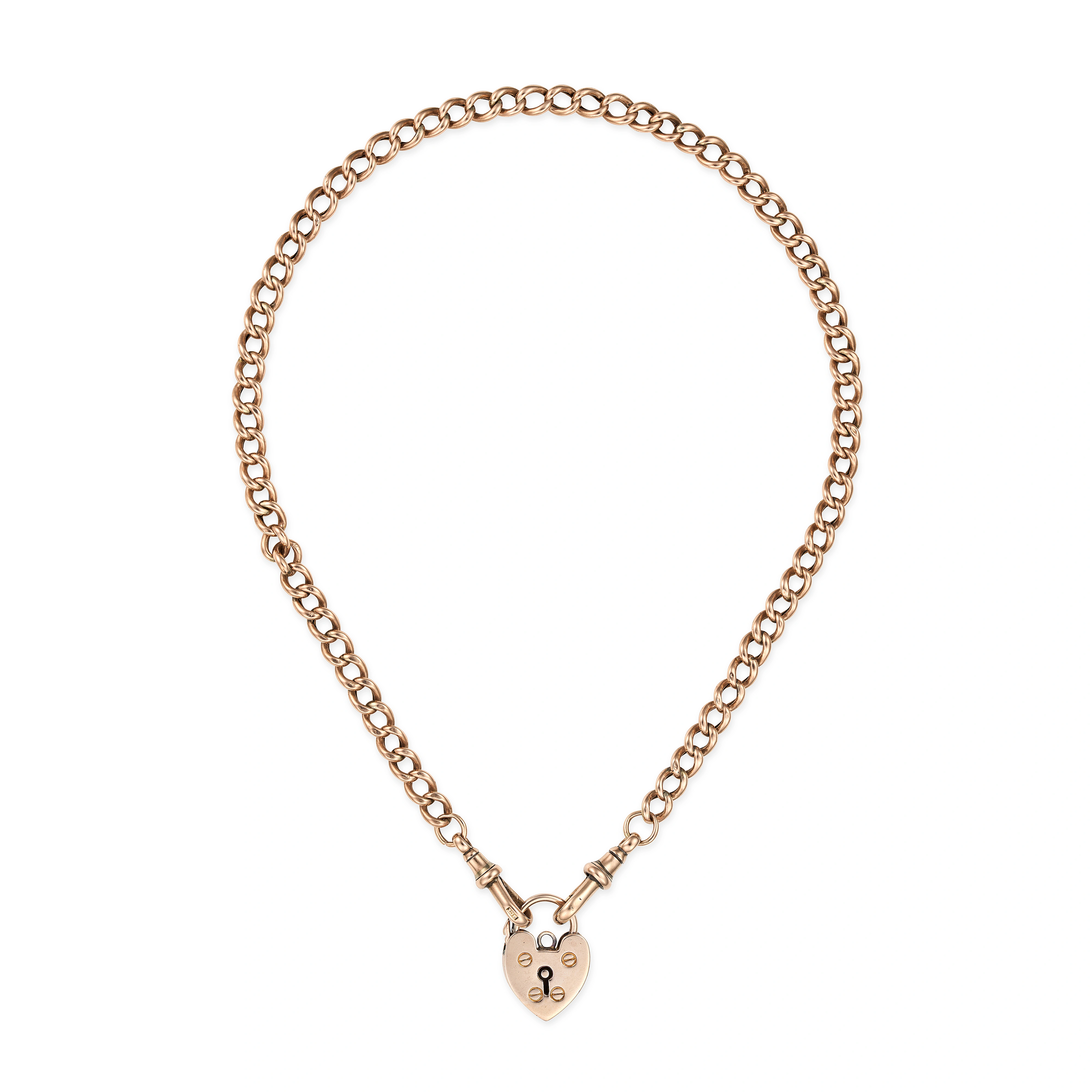 AN ANTIQUE HEART PADLOCK NECKLACE in 9ct yellow go ...