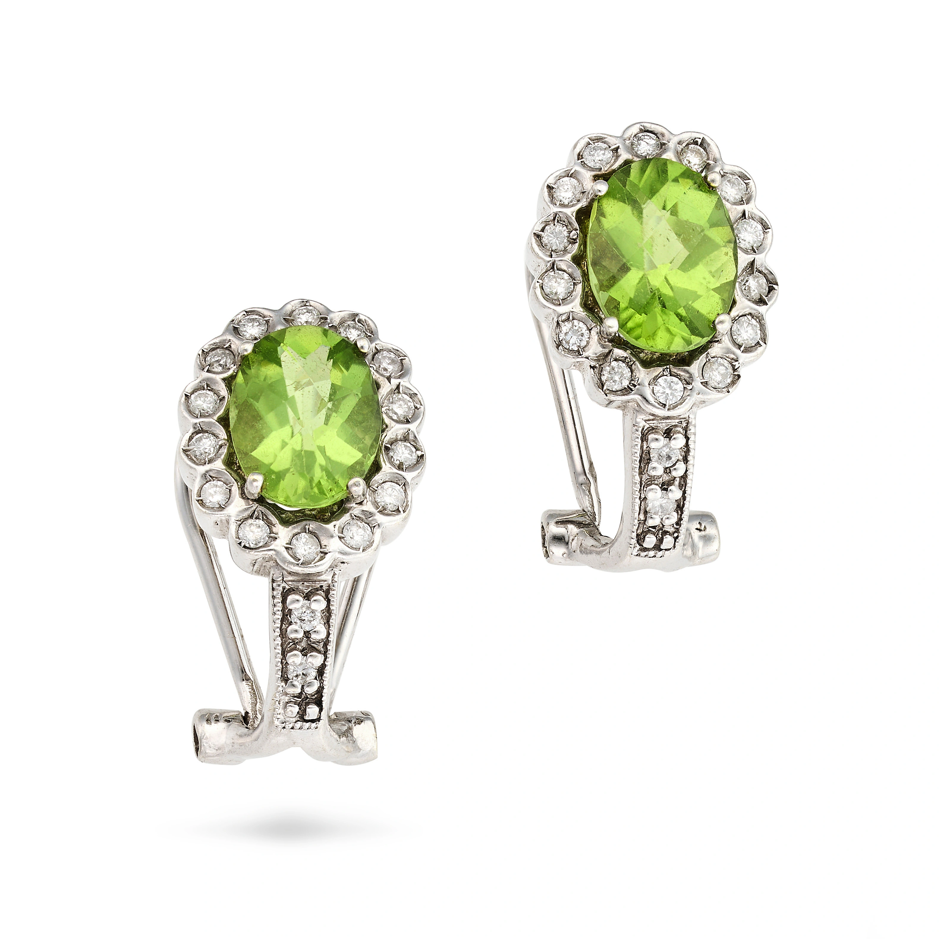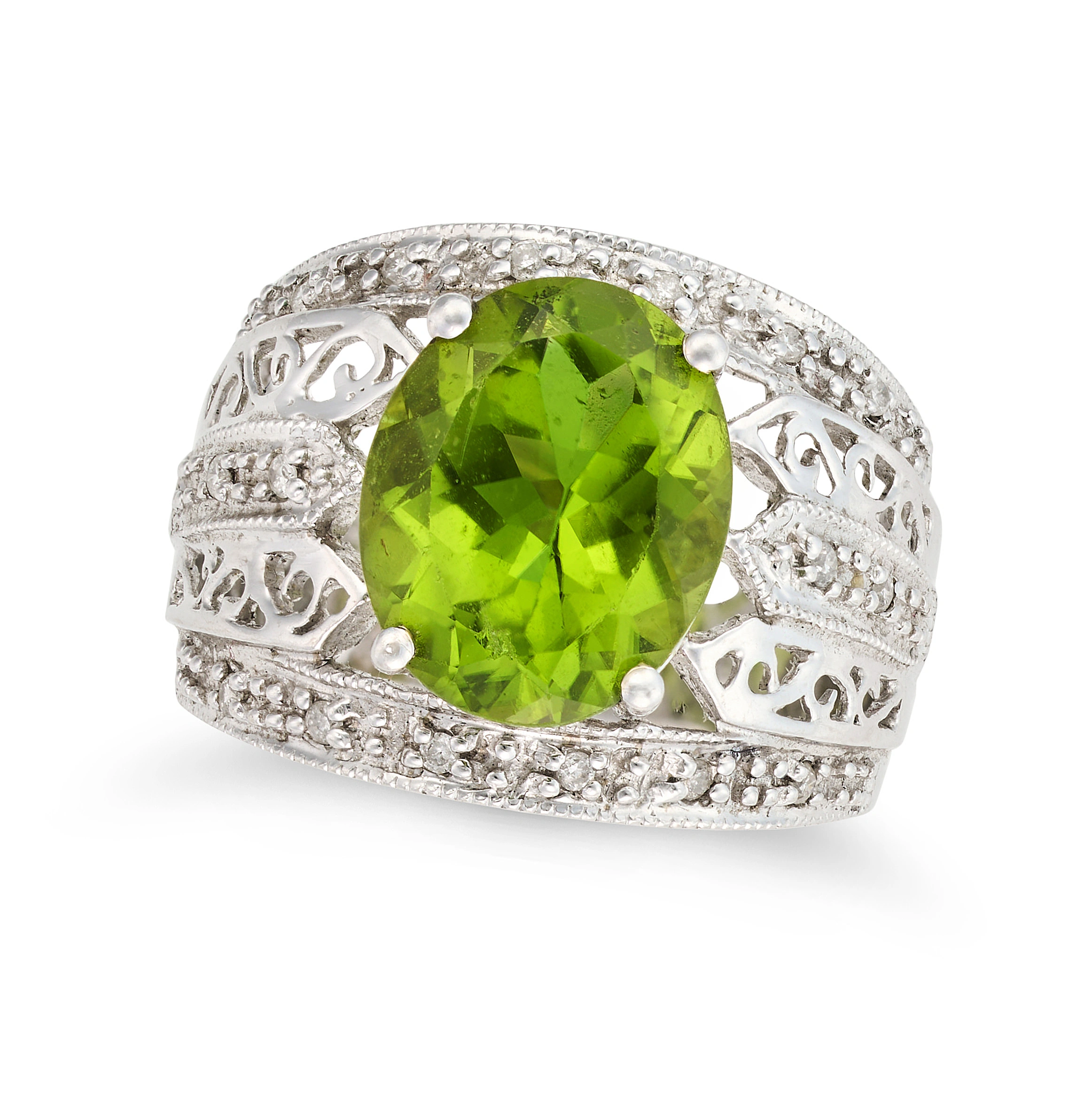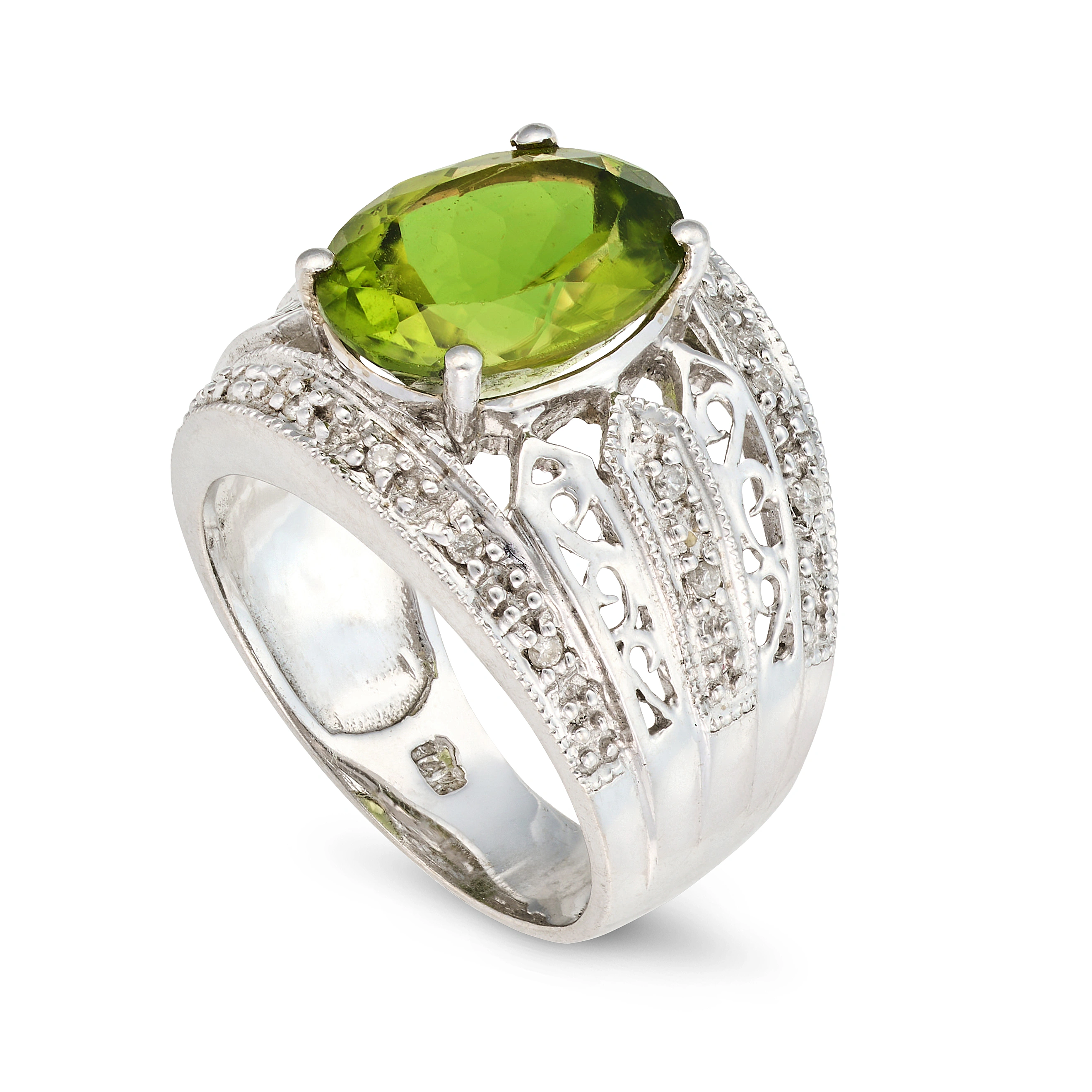 A PERIDOT AND DIAMOND RING AND EARRINGS SUITE the ...