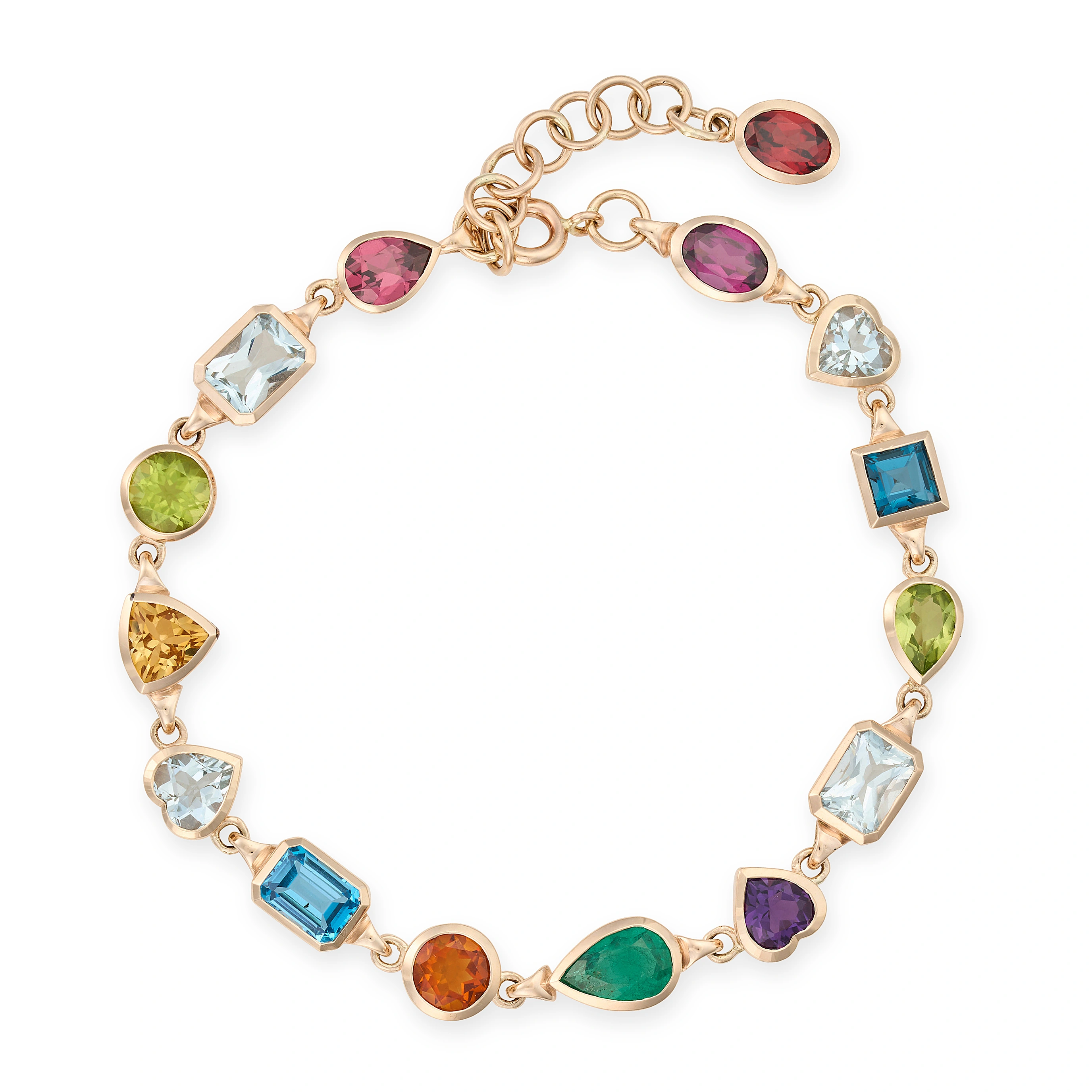 A MULTI GEM BRACELET comprising a row of oval, hea ...