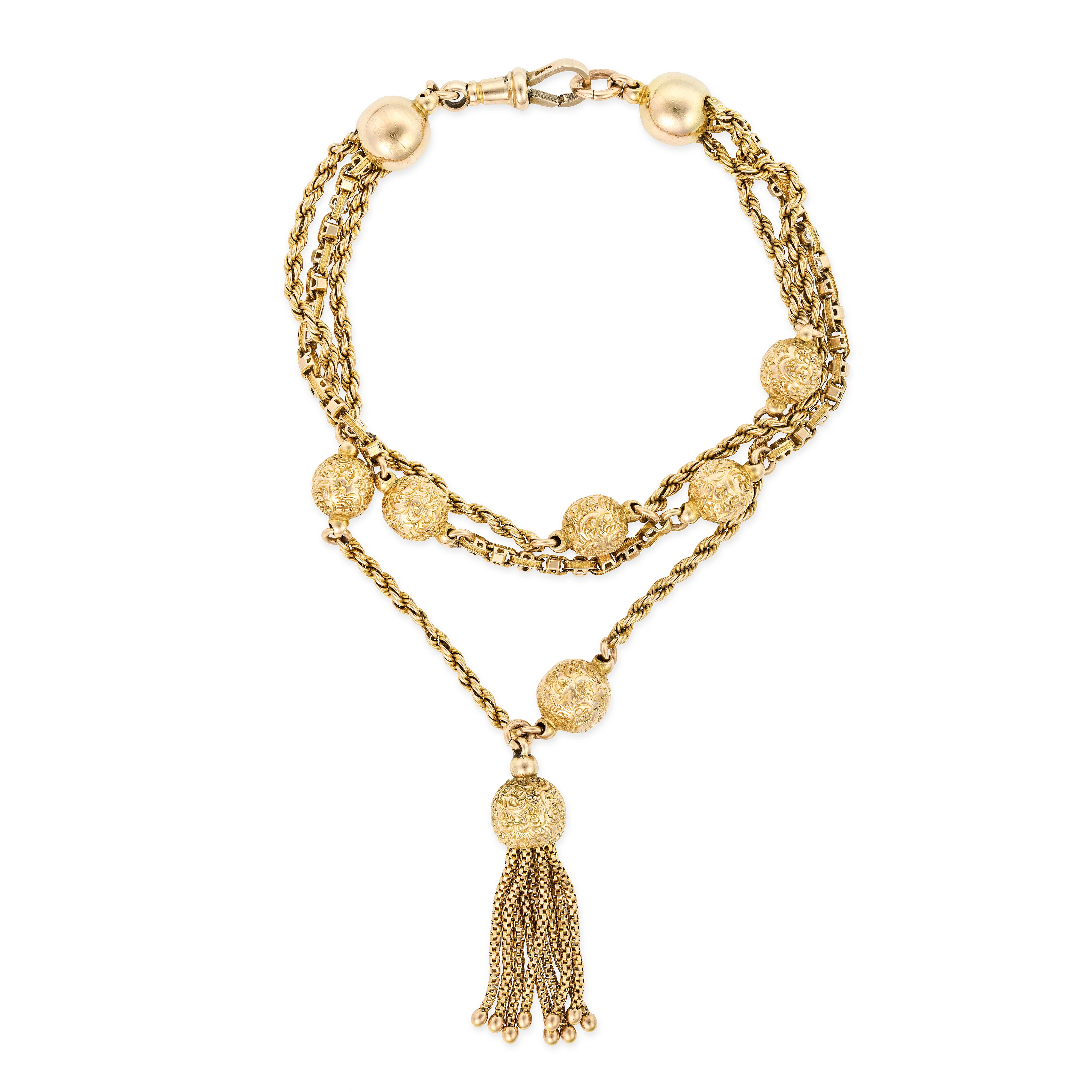 AN ANTIQUE TASSEL BRACELET comprising three rows o ...