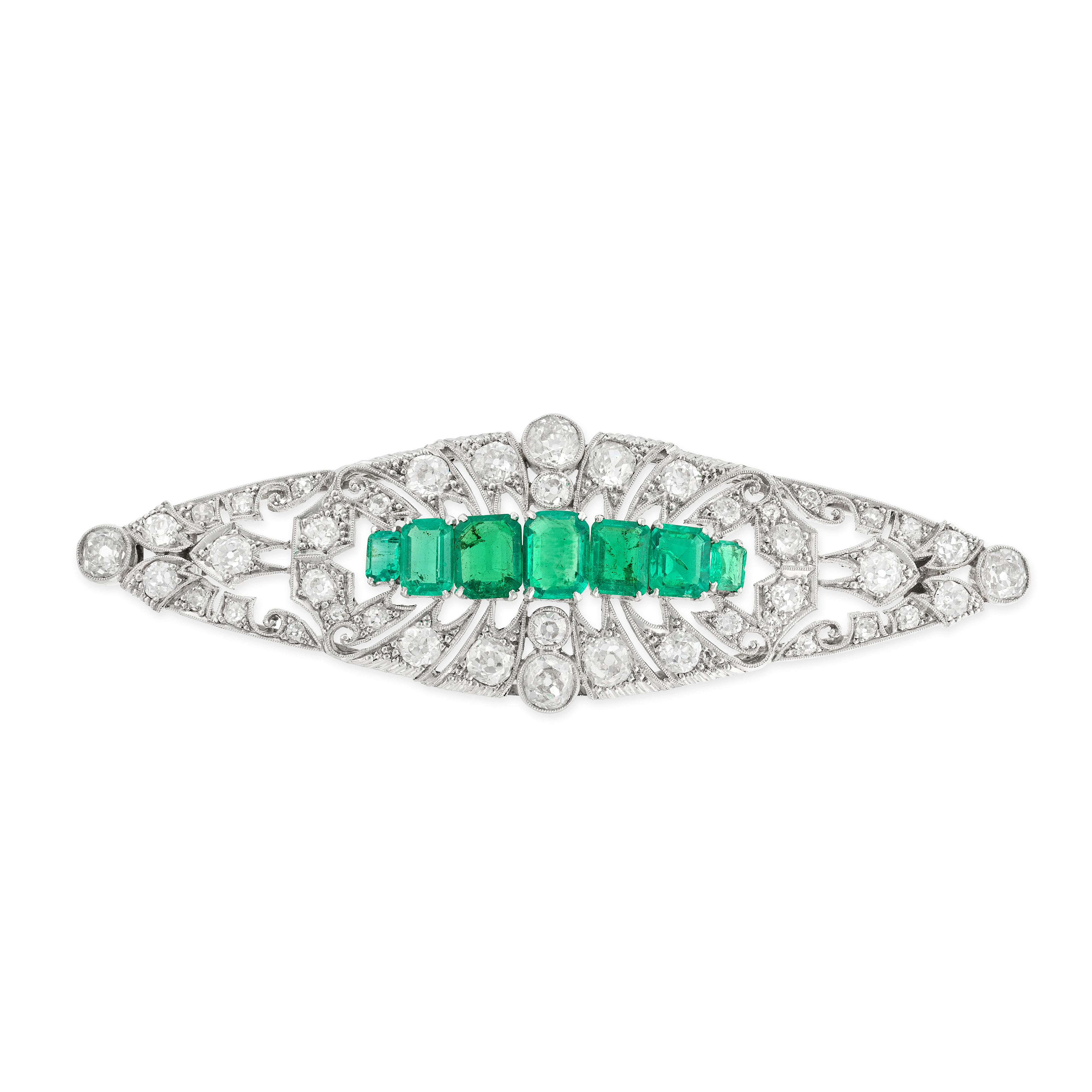 AN ANTIQUE EMERALD AND DIAMOND BROOCH the tapering ...