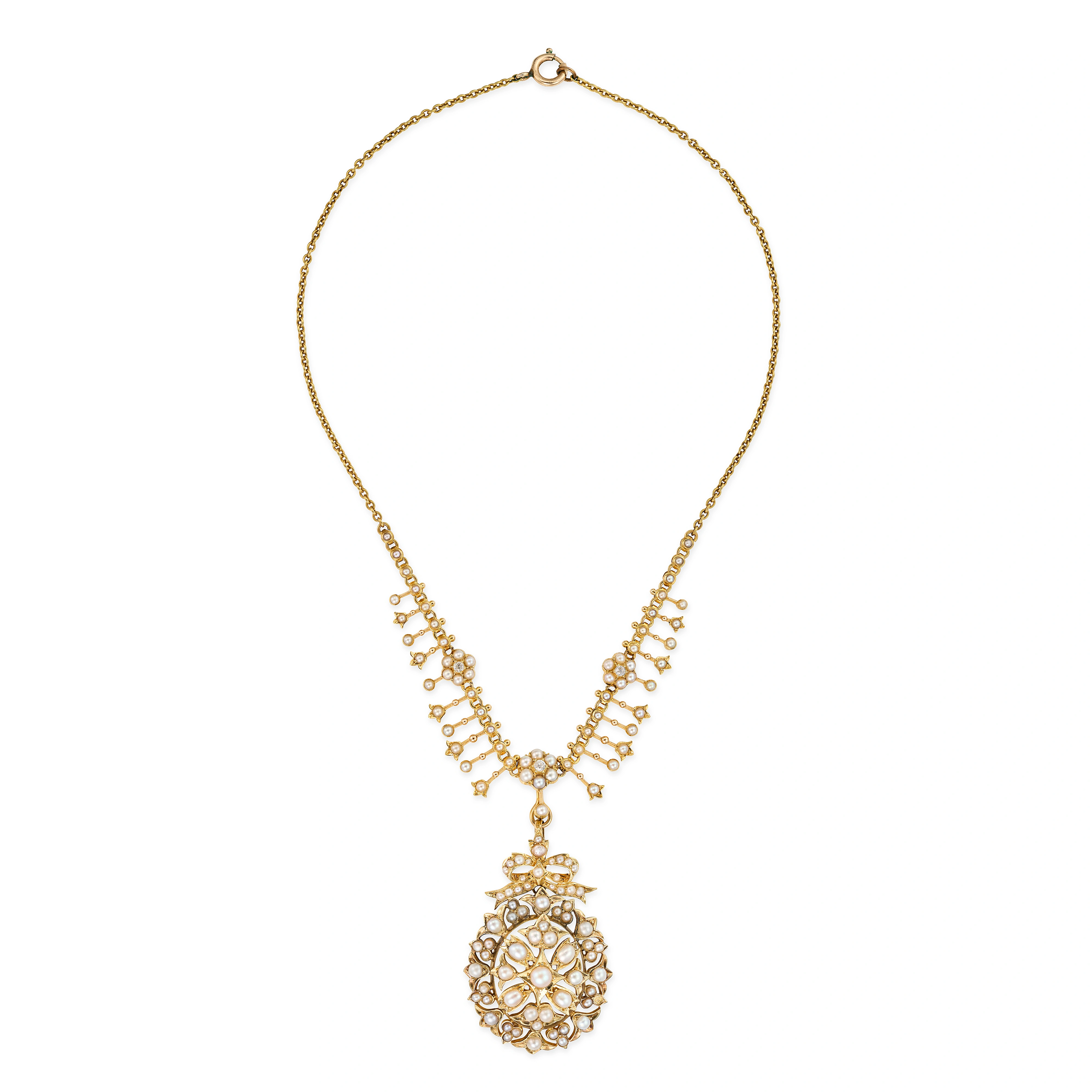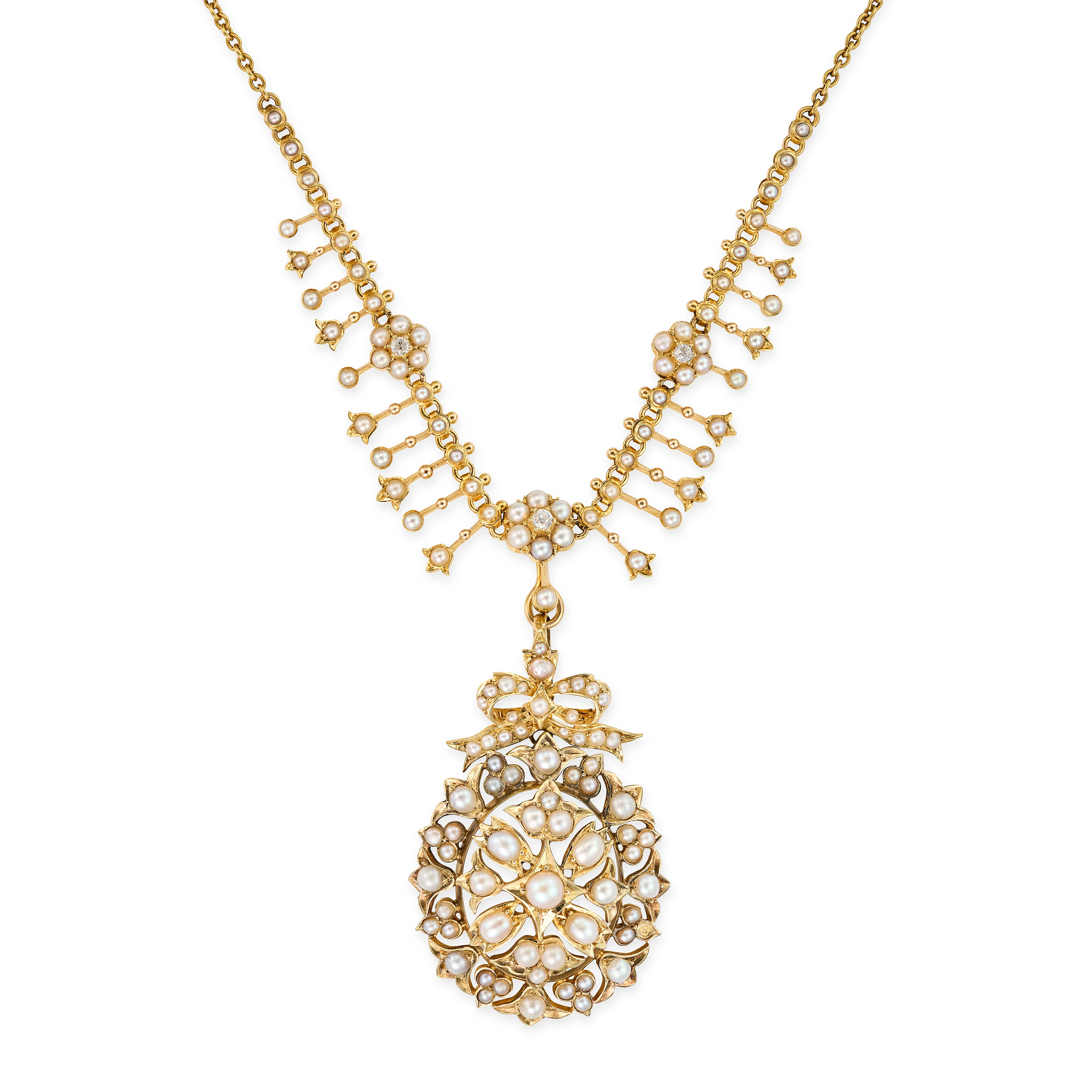 AN ANTIQUE VICTORIAN PEARL AND DIAMOND PENDANT NEC ...