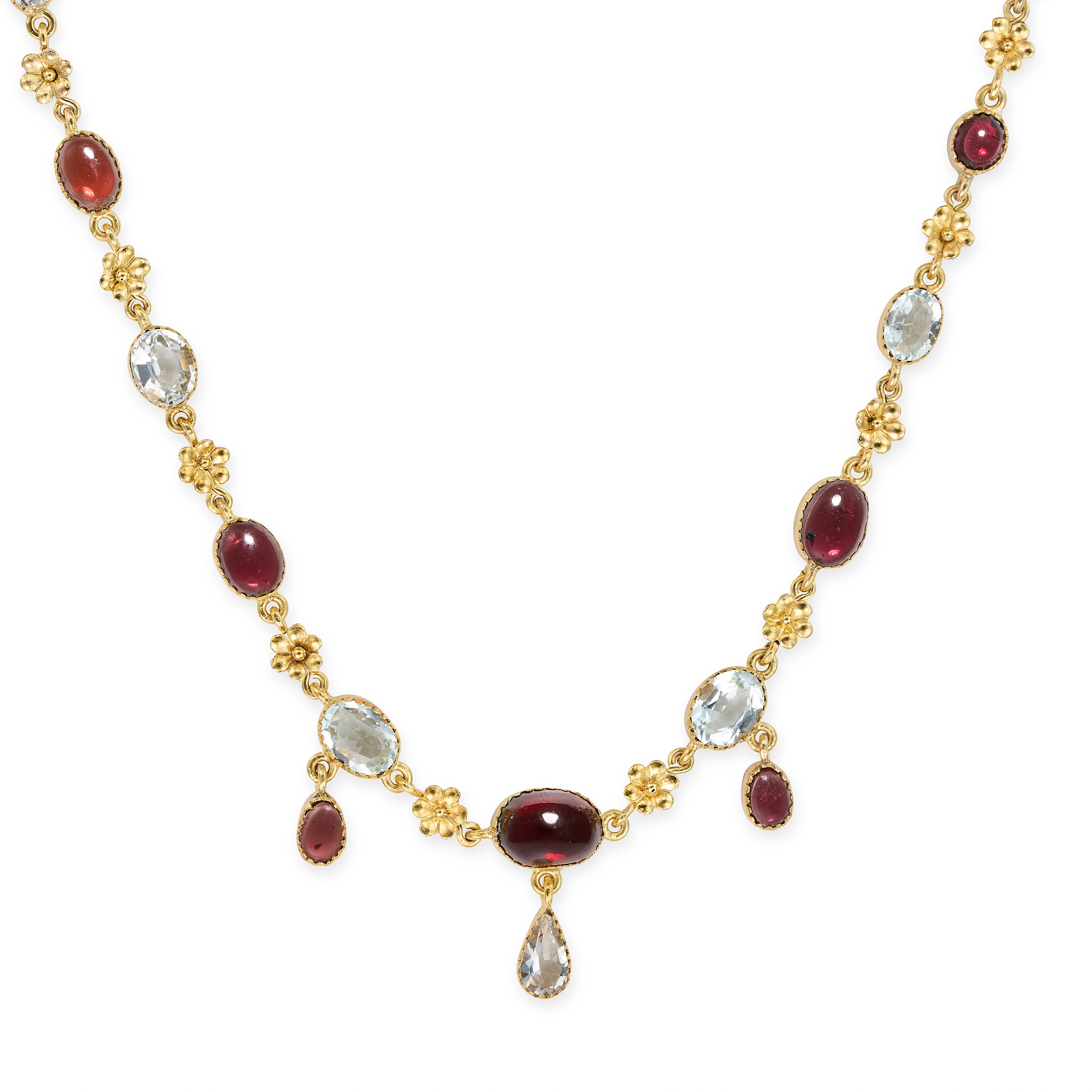 AN ANTIQUE GARNET AND AQUAMARINE NECKLACE comprisi ...