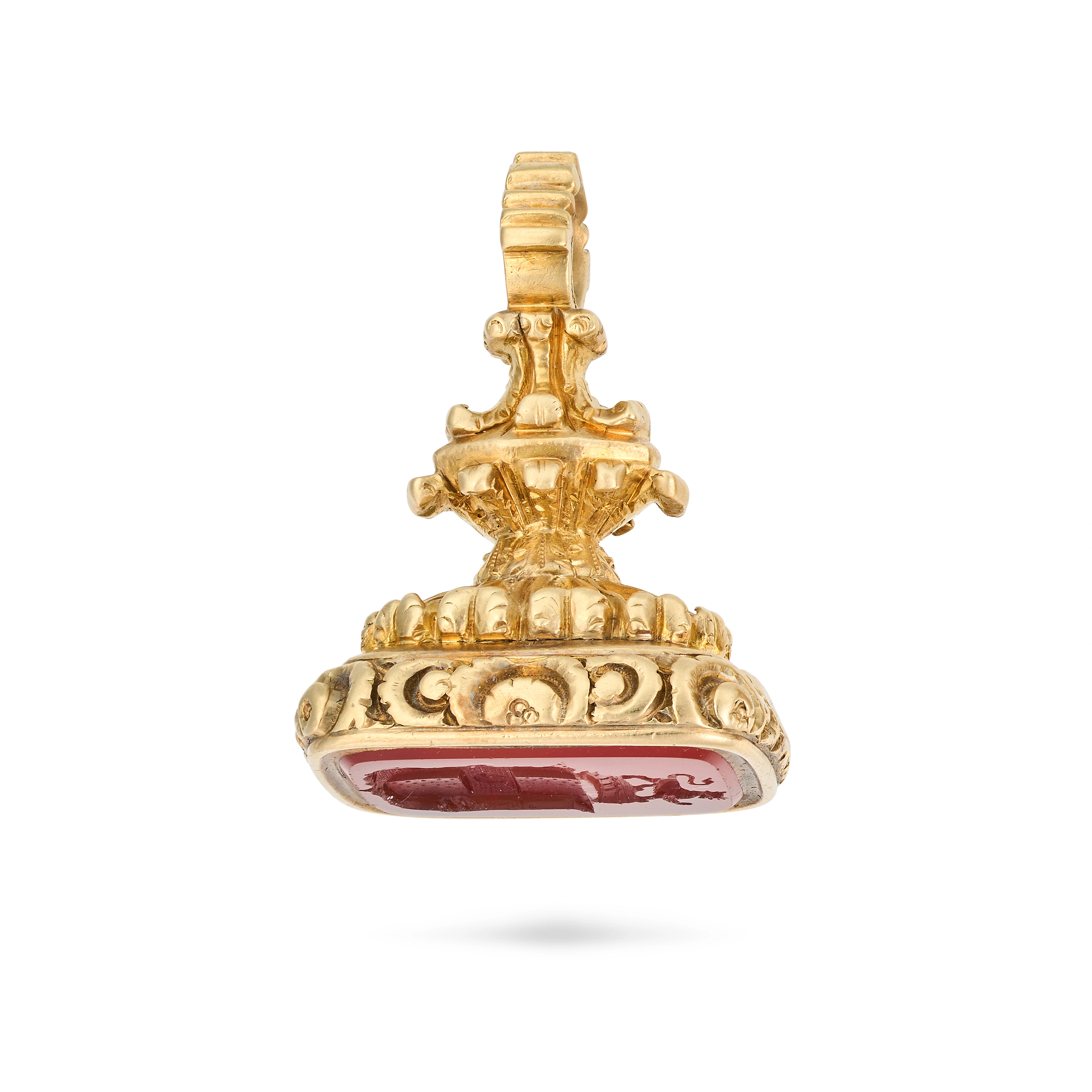 AN ANTIQUE CARNELIAN FOB SEAL / PENDANT the foliat ...
