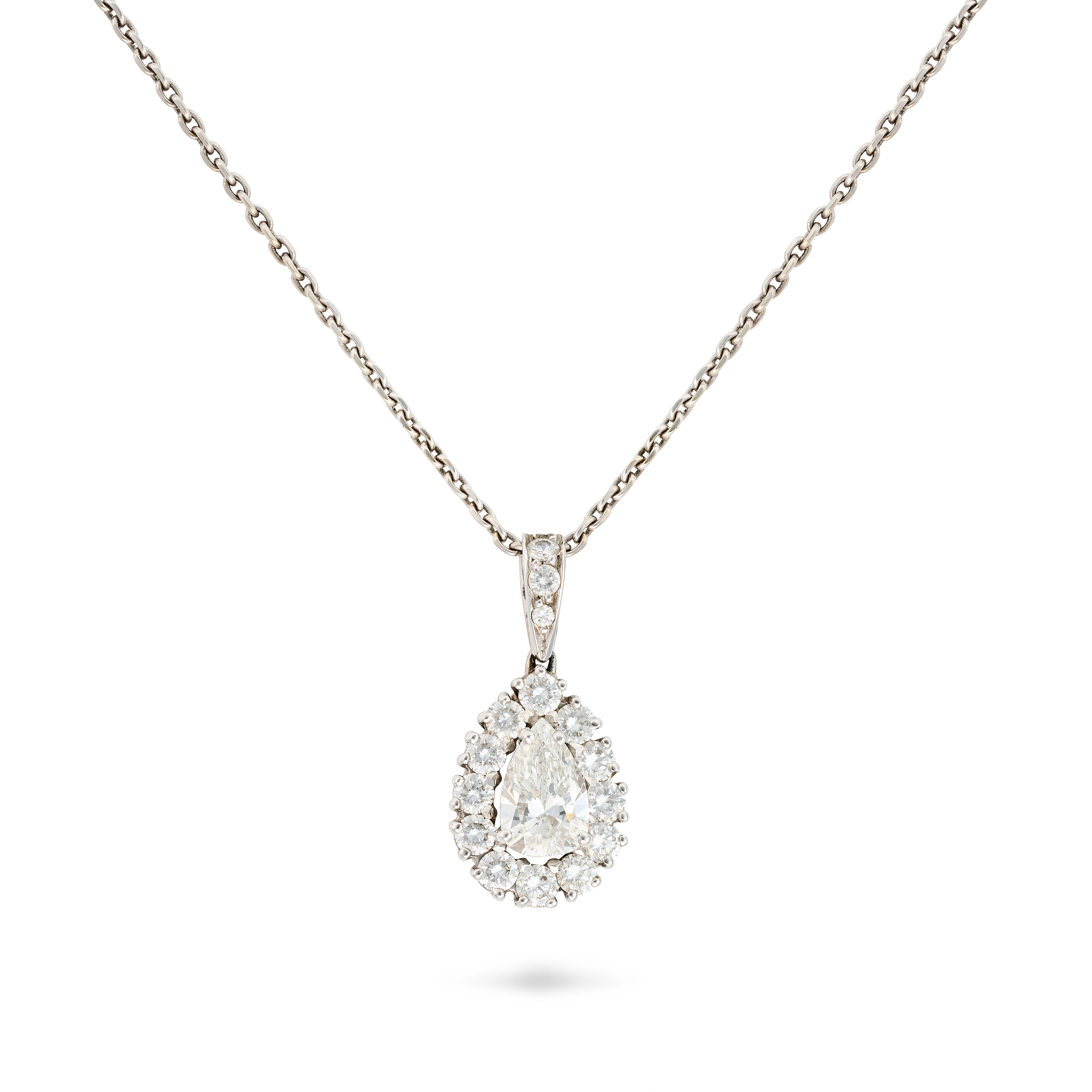 A DIAMOND CLUSTER PENDANT NECKLACE in 18ct white g ...