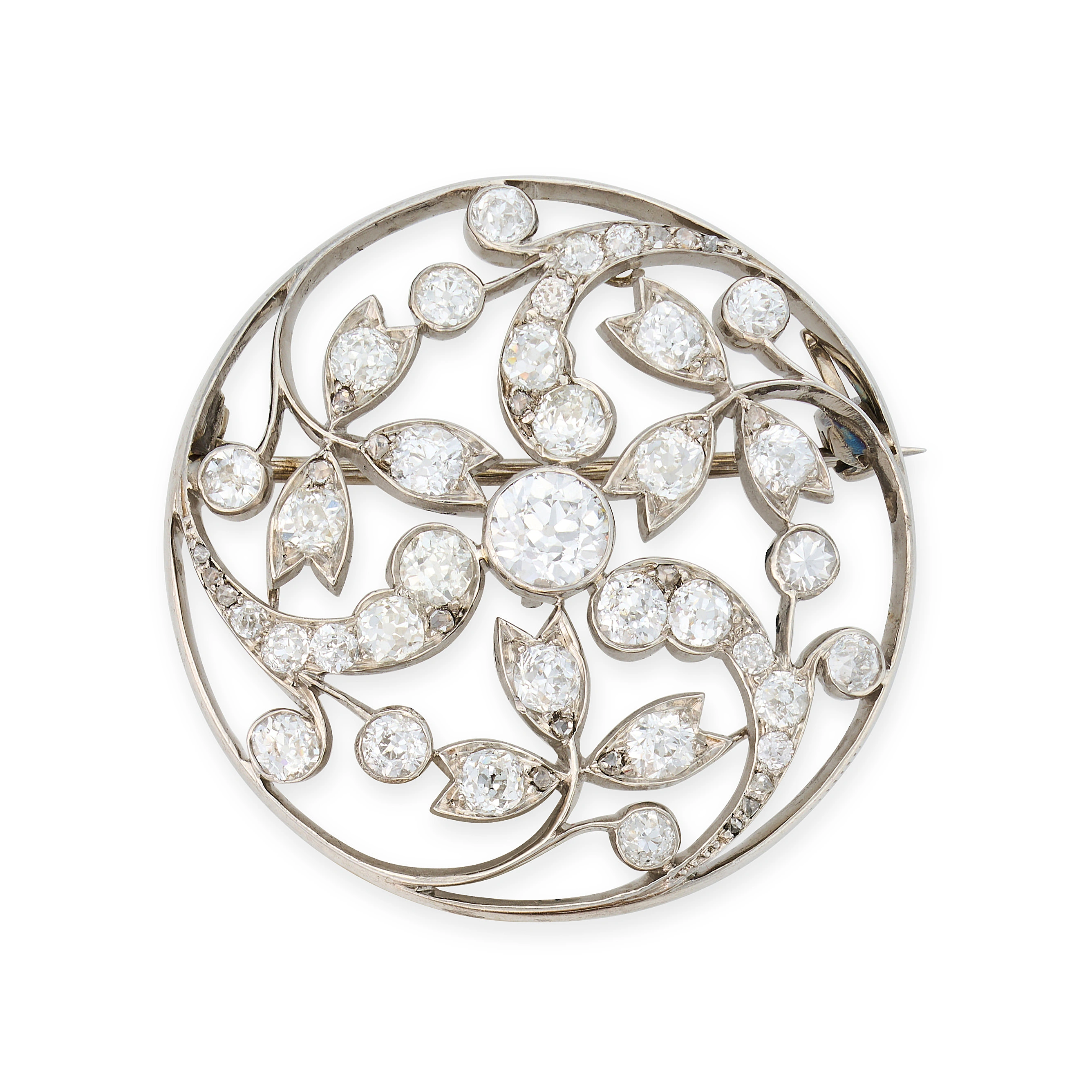 AN ANTIQUE DIAMOND BROOCH the openwork pendant in ...