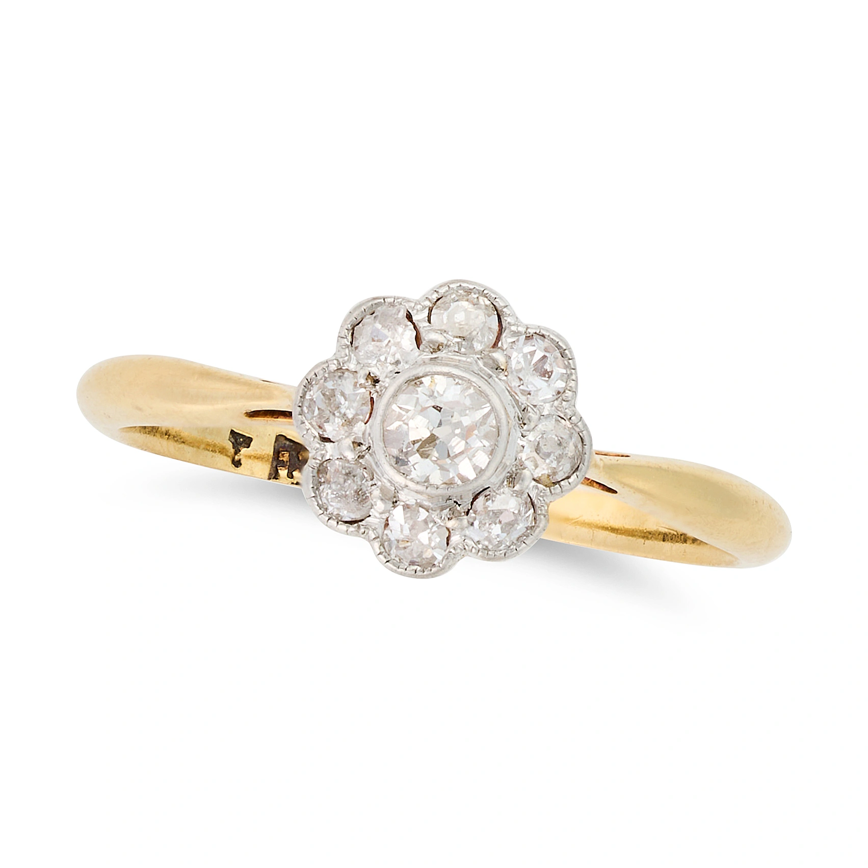 AN ANTIQUE DIAMOND CLUSTER RING in 18ct yellow gol ...