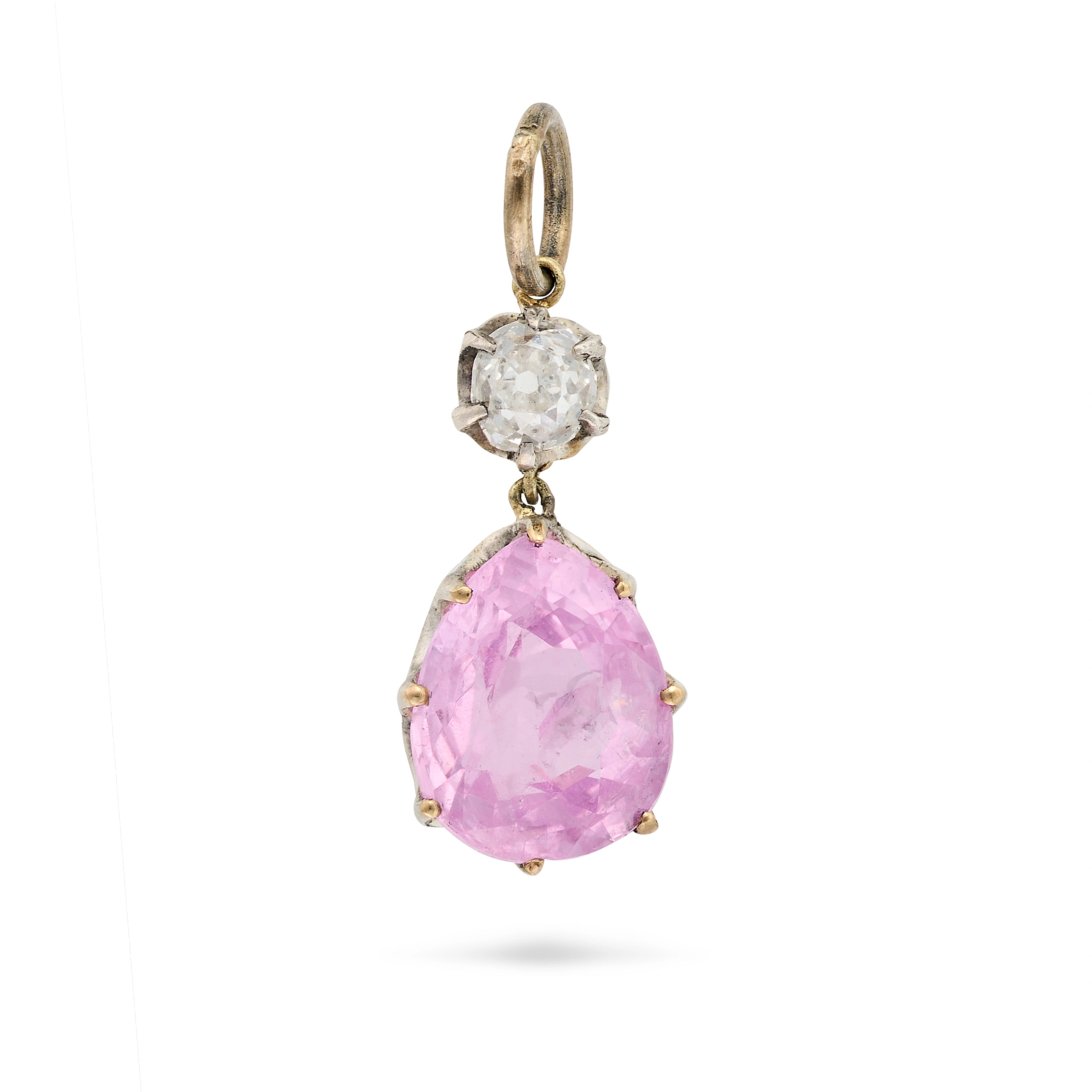 A PINK SAPPHIRE AND DIAMOND PENDANT comprising a p ...