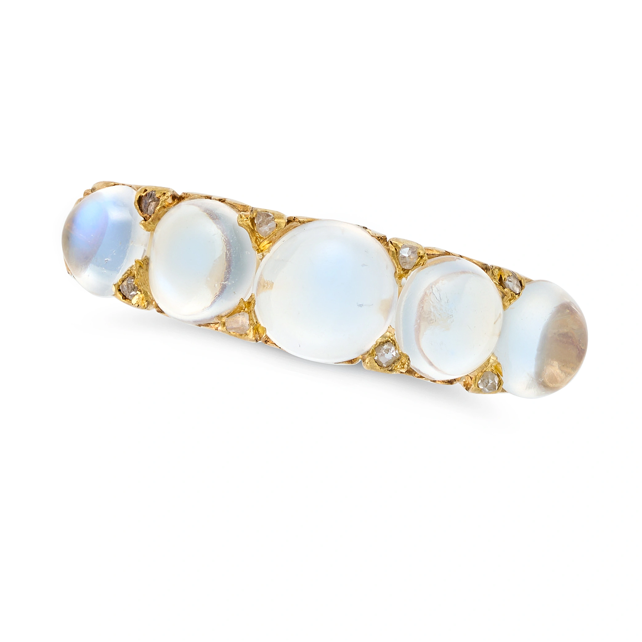 AN ANTIQUE MOONSTONE AND DIAMOND BAND RING in yell ...