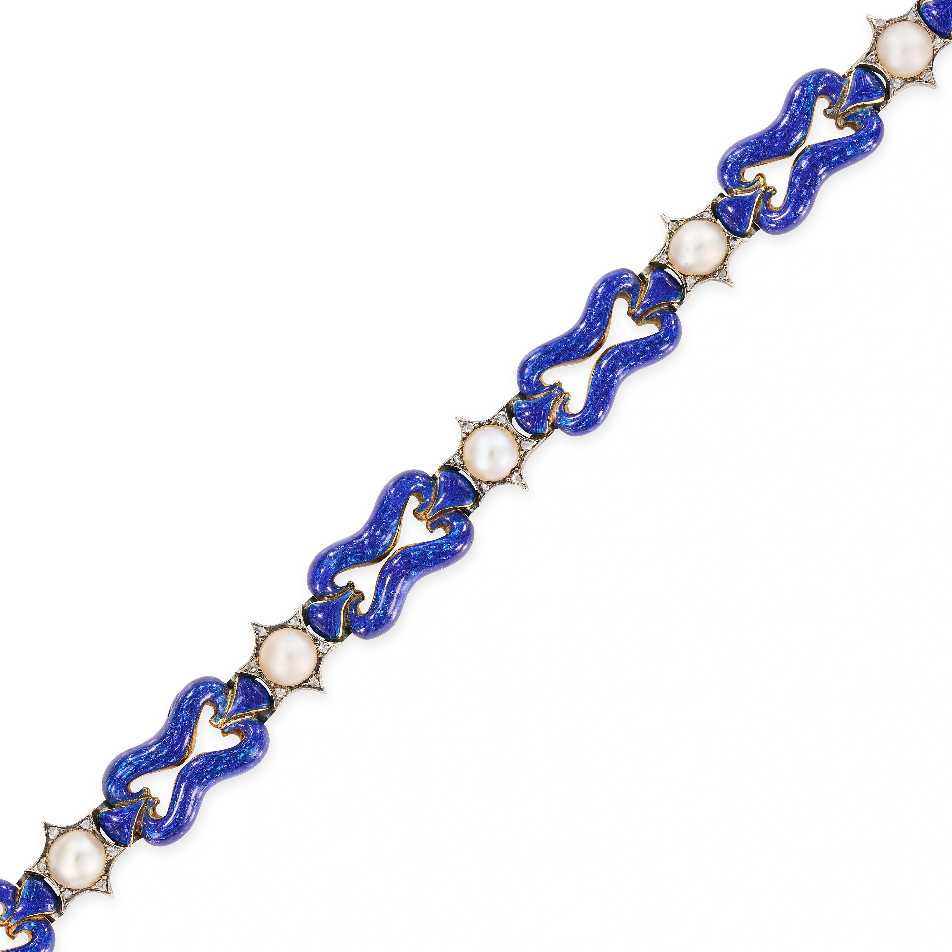 AN ANTIQUE PEARL, ENAMEL AND DIAMOND BRACELET in y ...