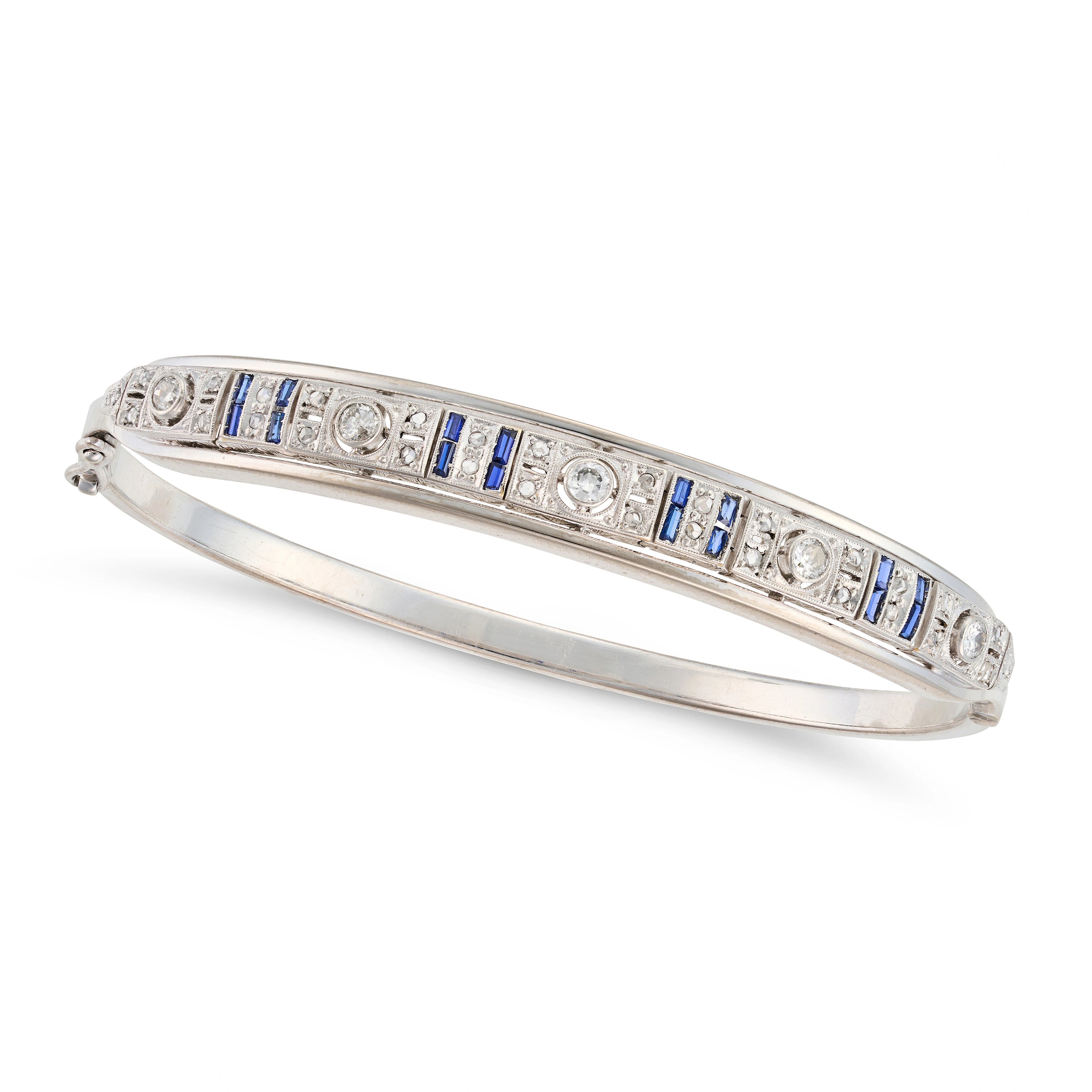 A RETRO DIAMOND AND SAPPHIRE BANGLE in 14ct white ...