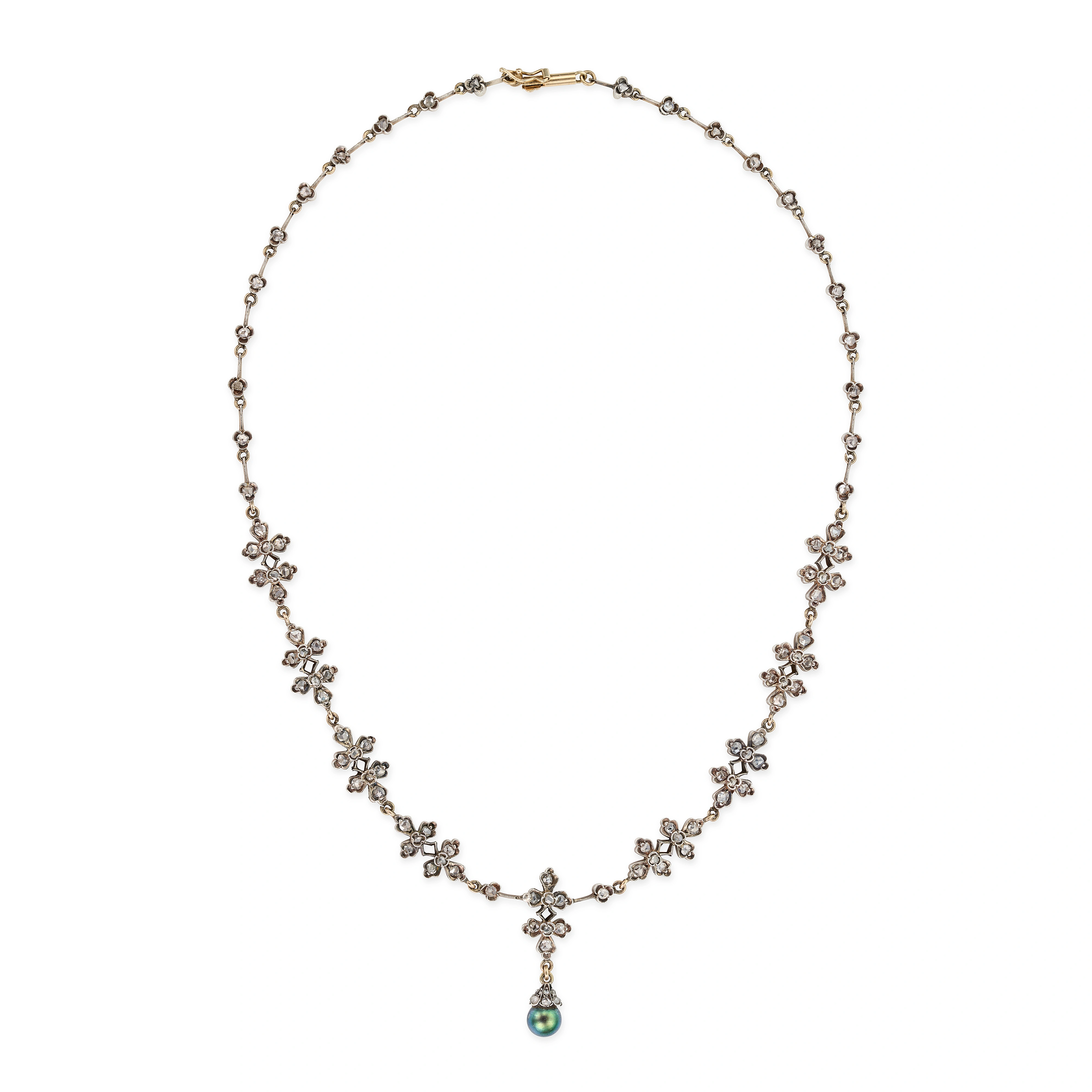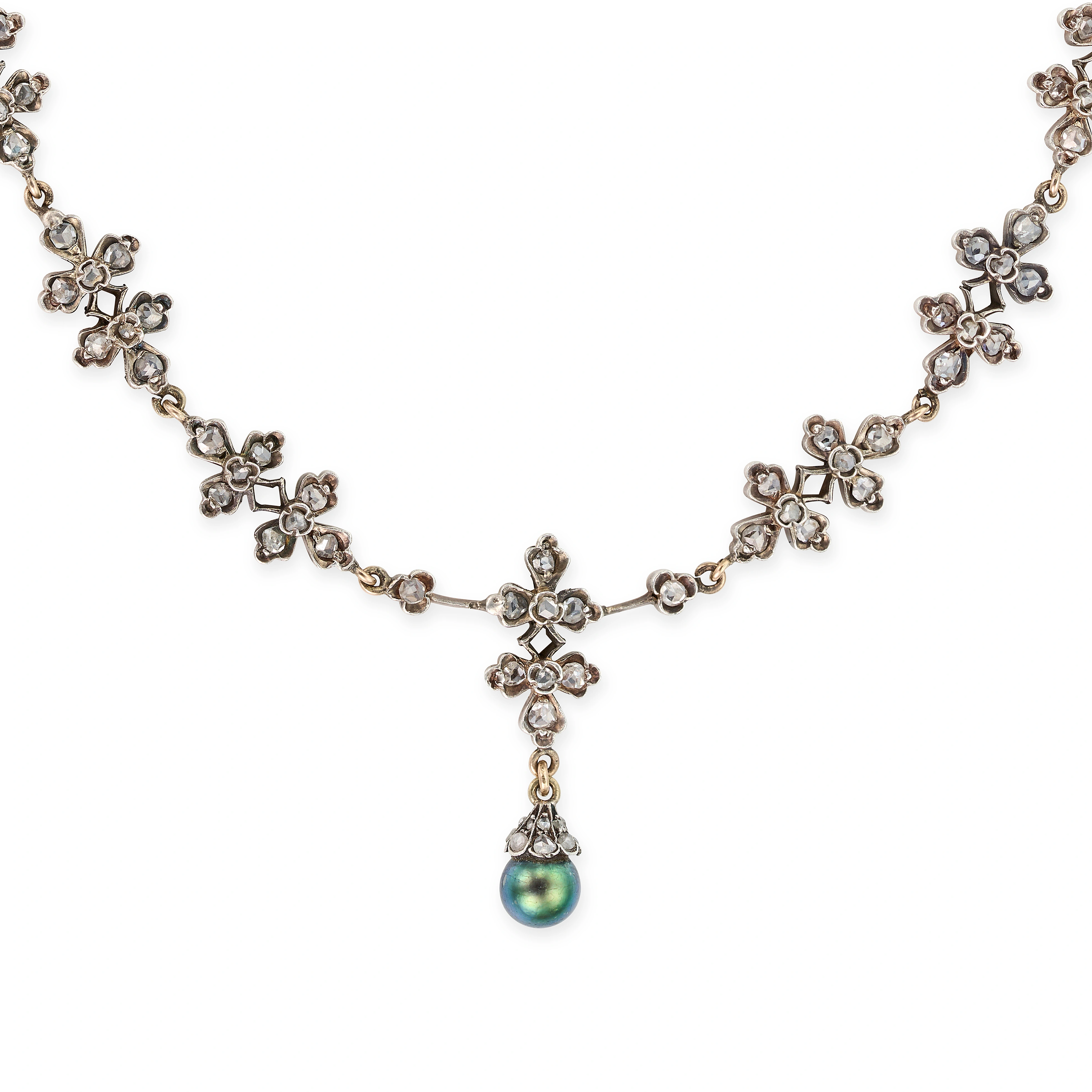 AN ANTIQUE DIAMOND AND BLACK PEARL PENDANT NECKLAC ...