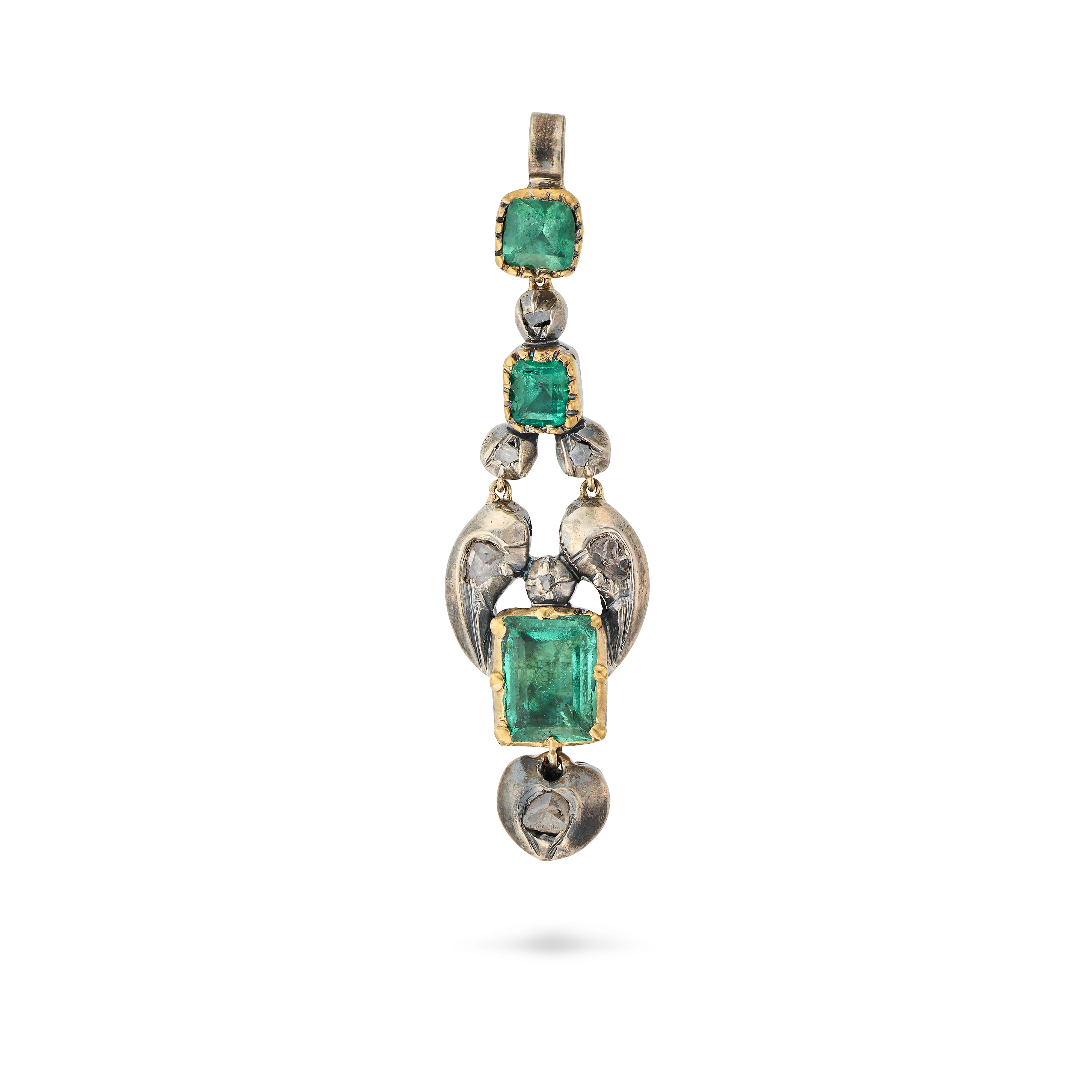 AN ANTIQUE EMERALD AND DIAMOND PENDANT, 19TH CENTU ...