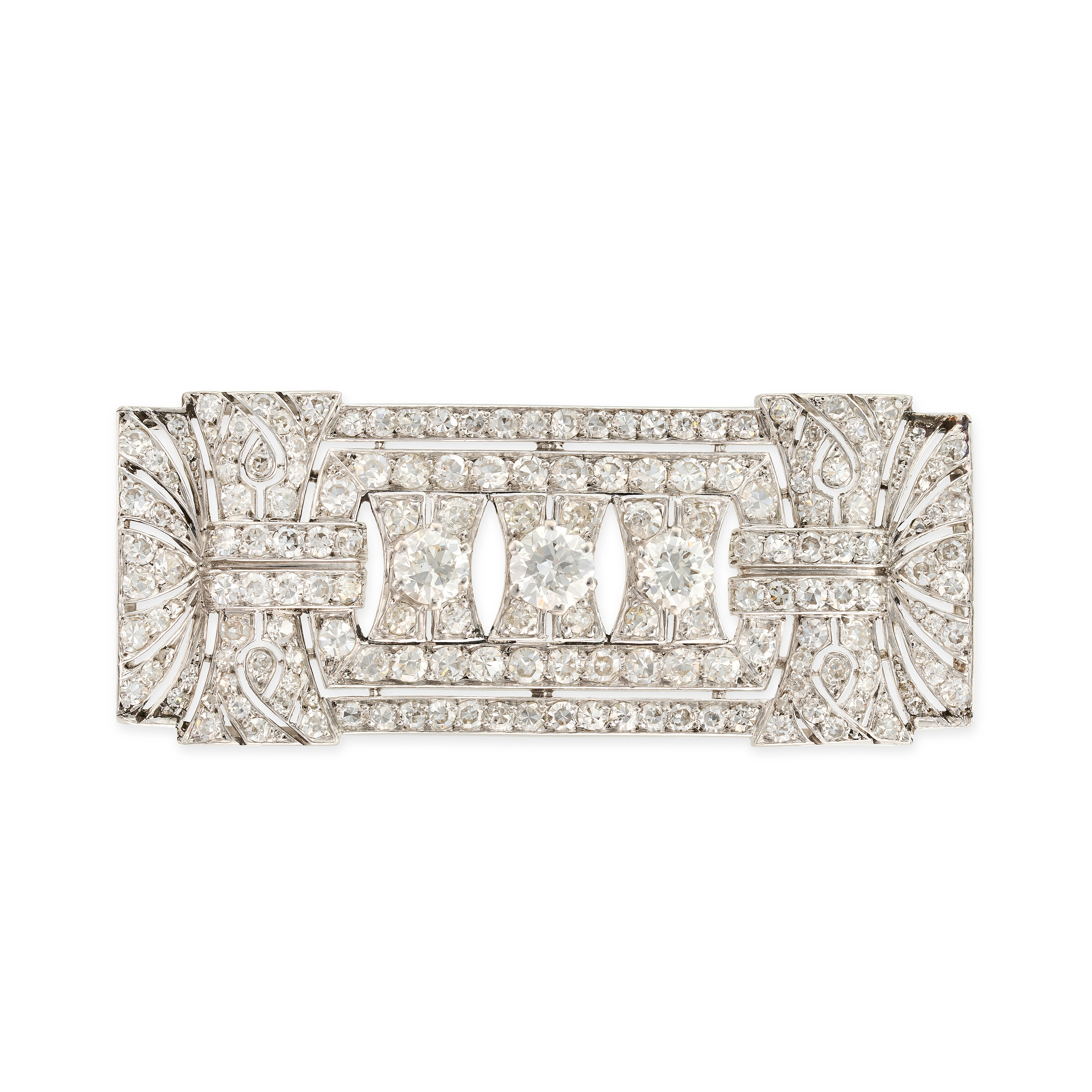 AN ART DECO FRENCH DIAMOND PLAQUE BROOCH in platin ...