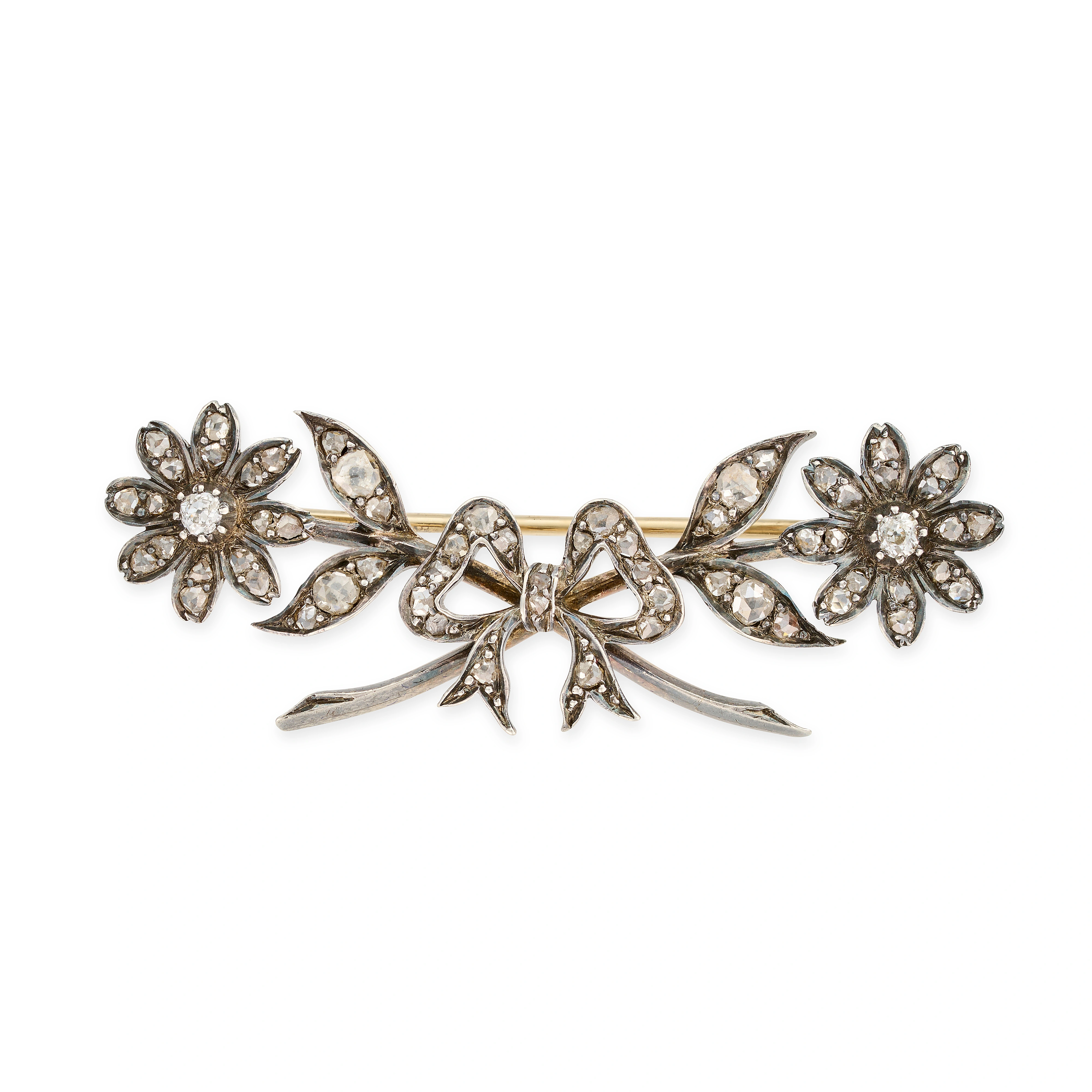 AN ANTIQUE DIAMOND BROOCH in yellow gold and silve ...