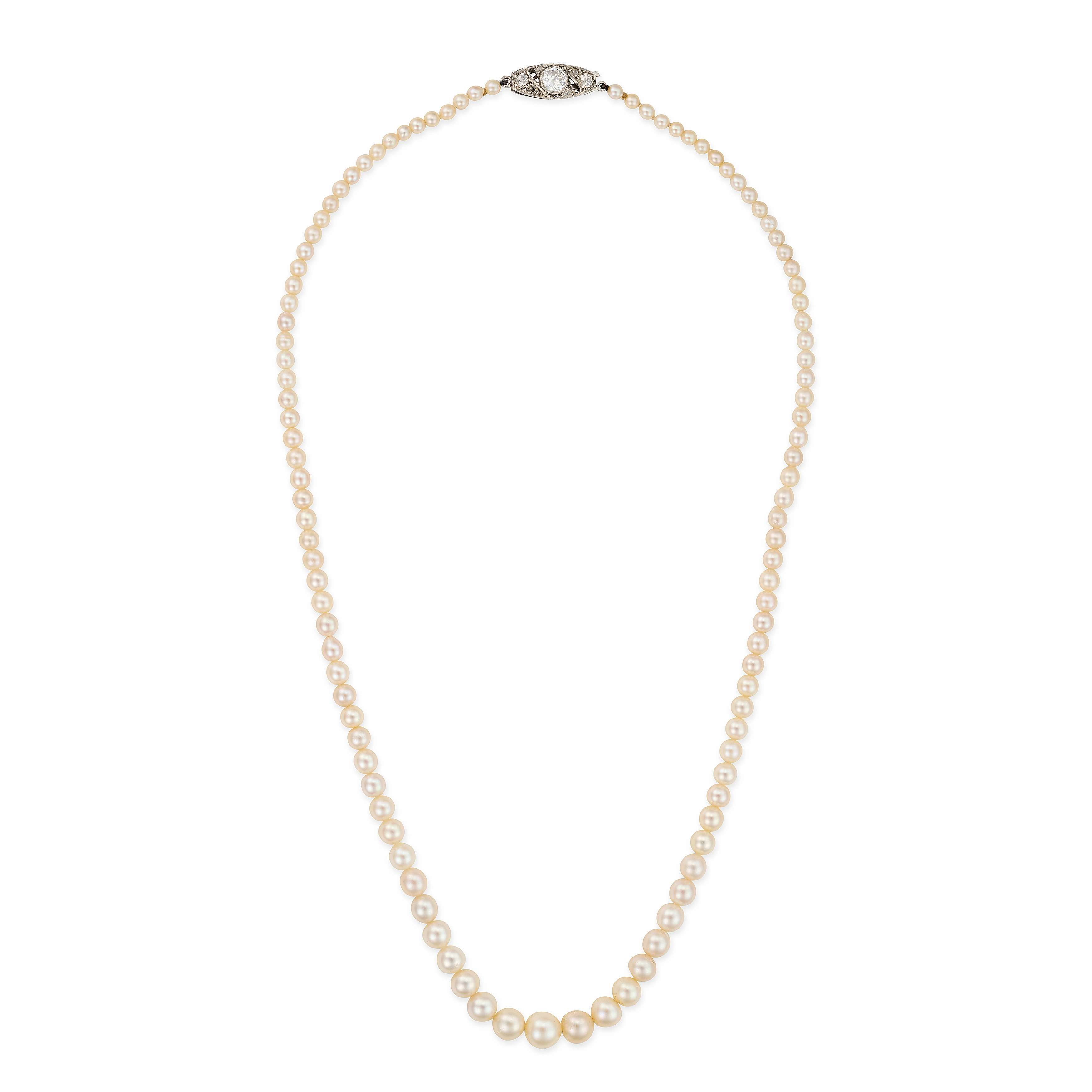 A PEARL AND DIAMOND NECKLACE comprising a single r ...
