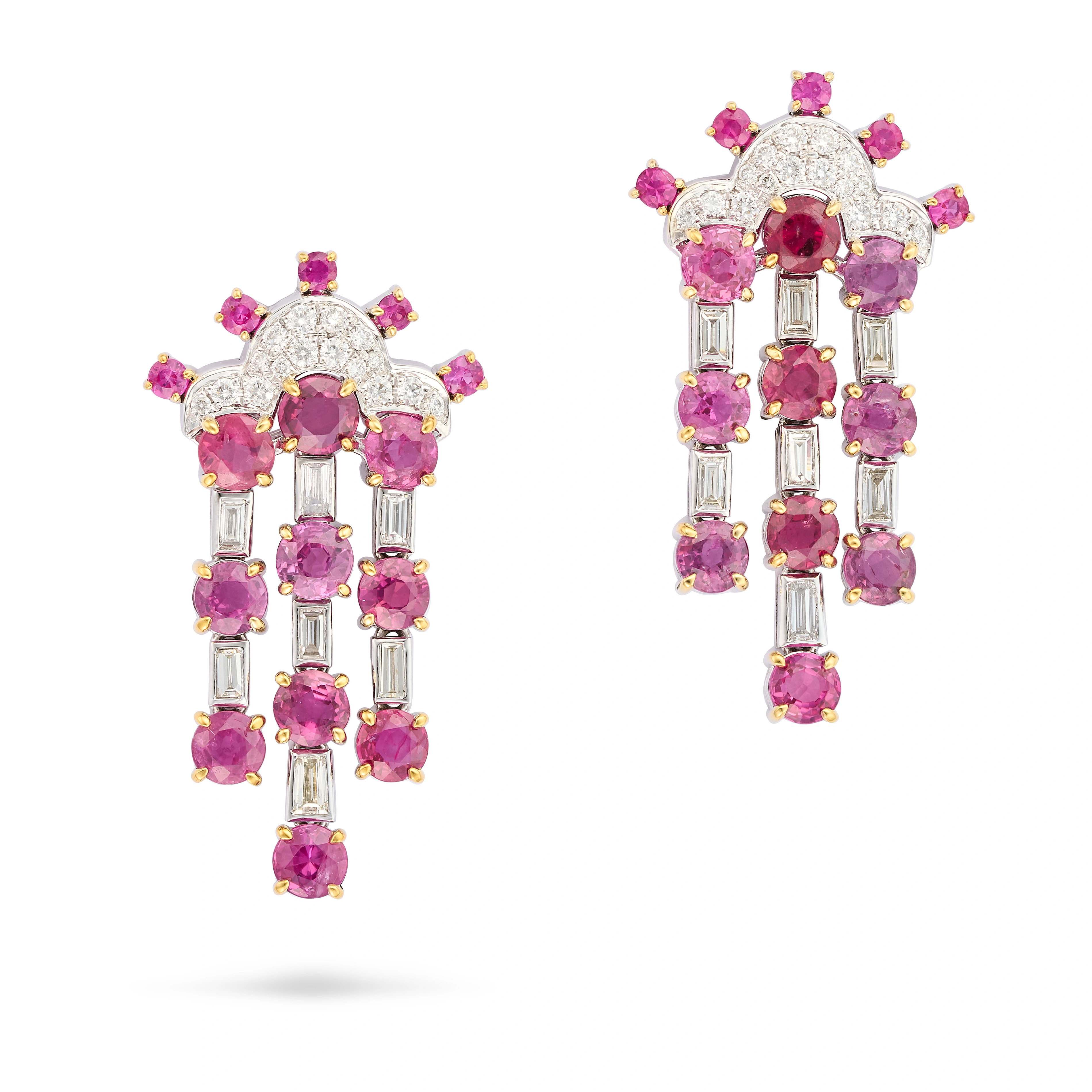 A PAIR OF RUBY AND DIAMOND CHANDELIER DROP EARRING ...