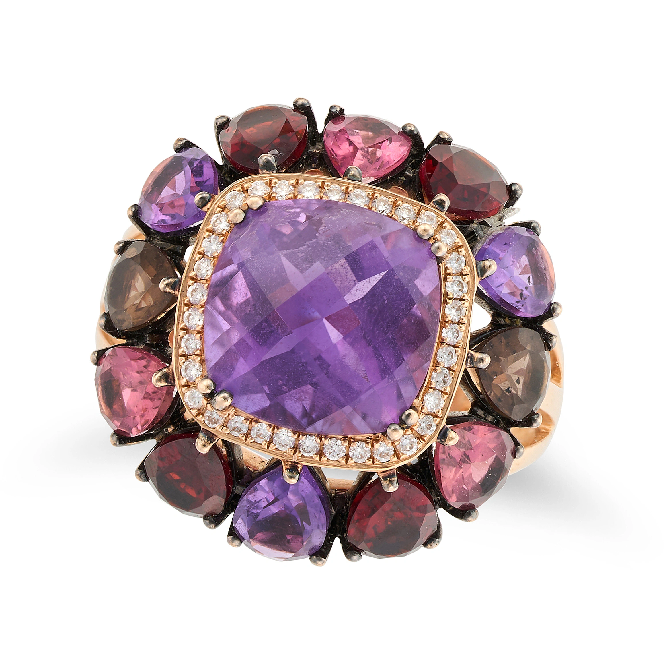 A MULTI GEM AND DIAMOND RING AND EARRINGS SET the ...
