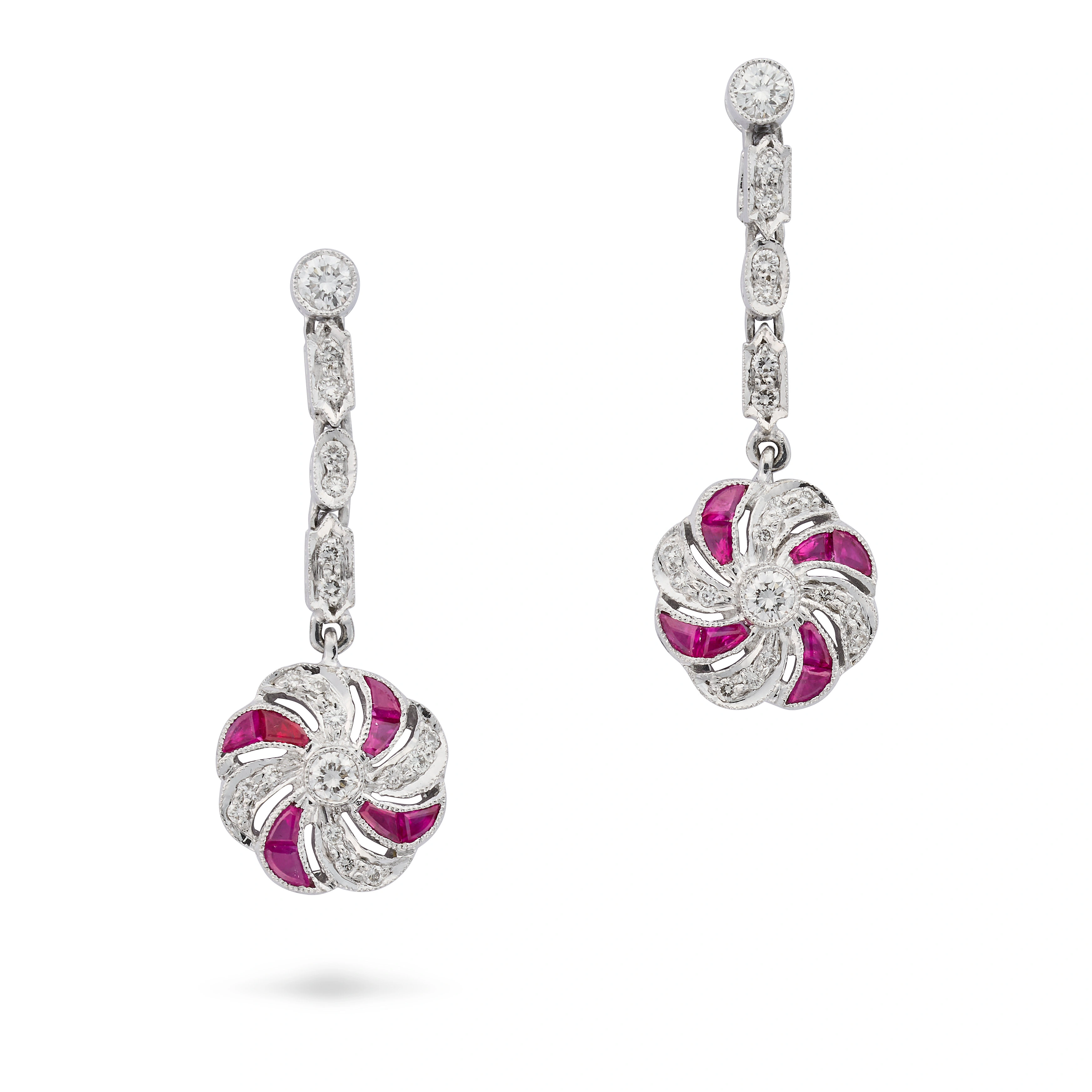 NO RESERVE - A PAIR OF RUBY AND DIAMOND DROP EARRI ...