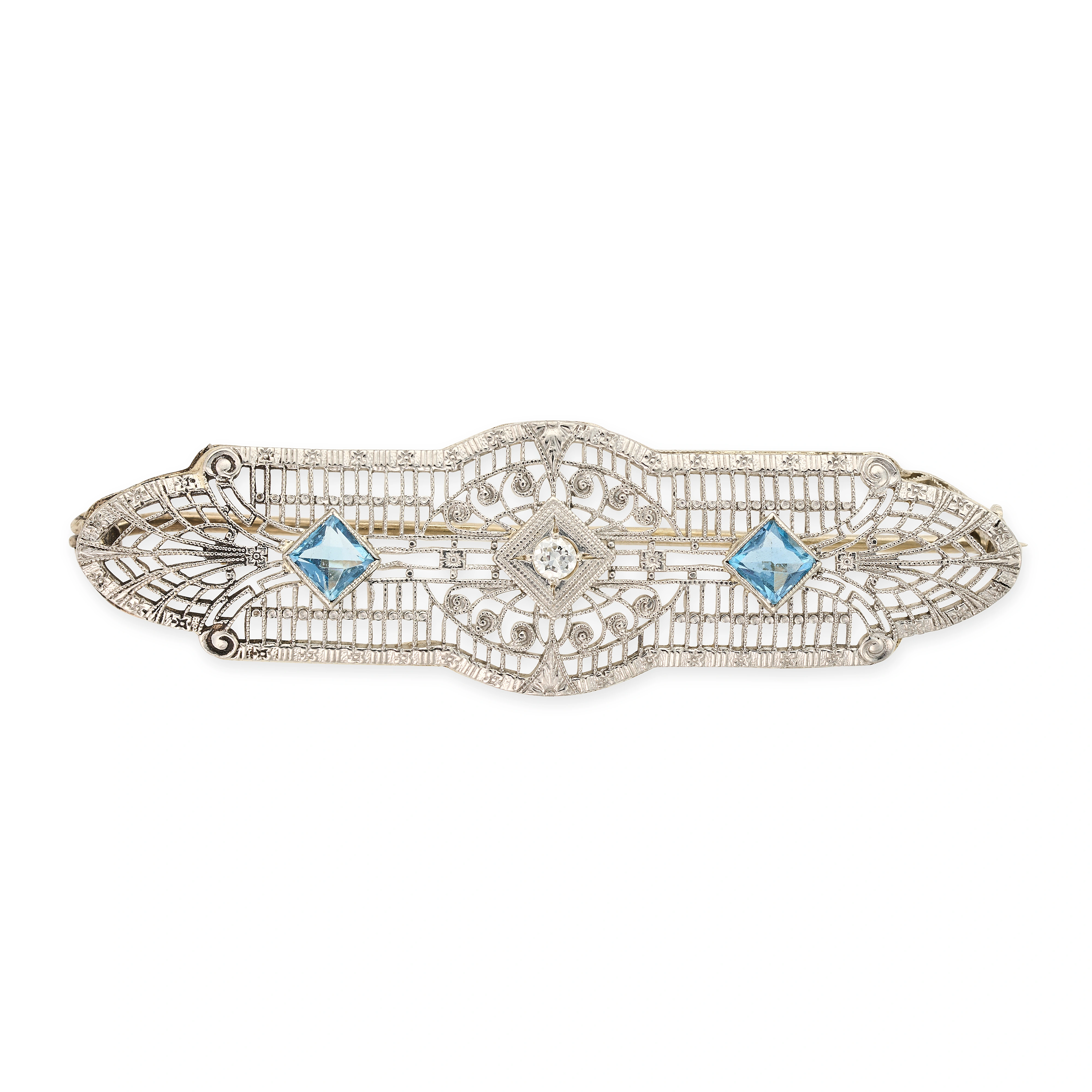 NO RESERVE - A VINTAGE DIAMOND AND AQUAMARINE BROO ...