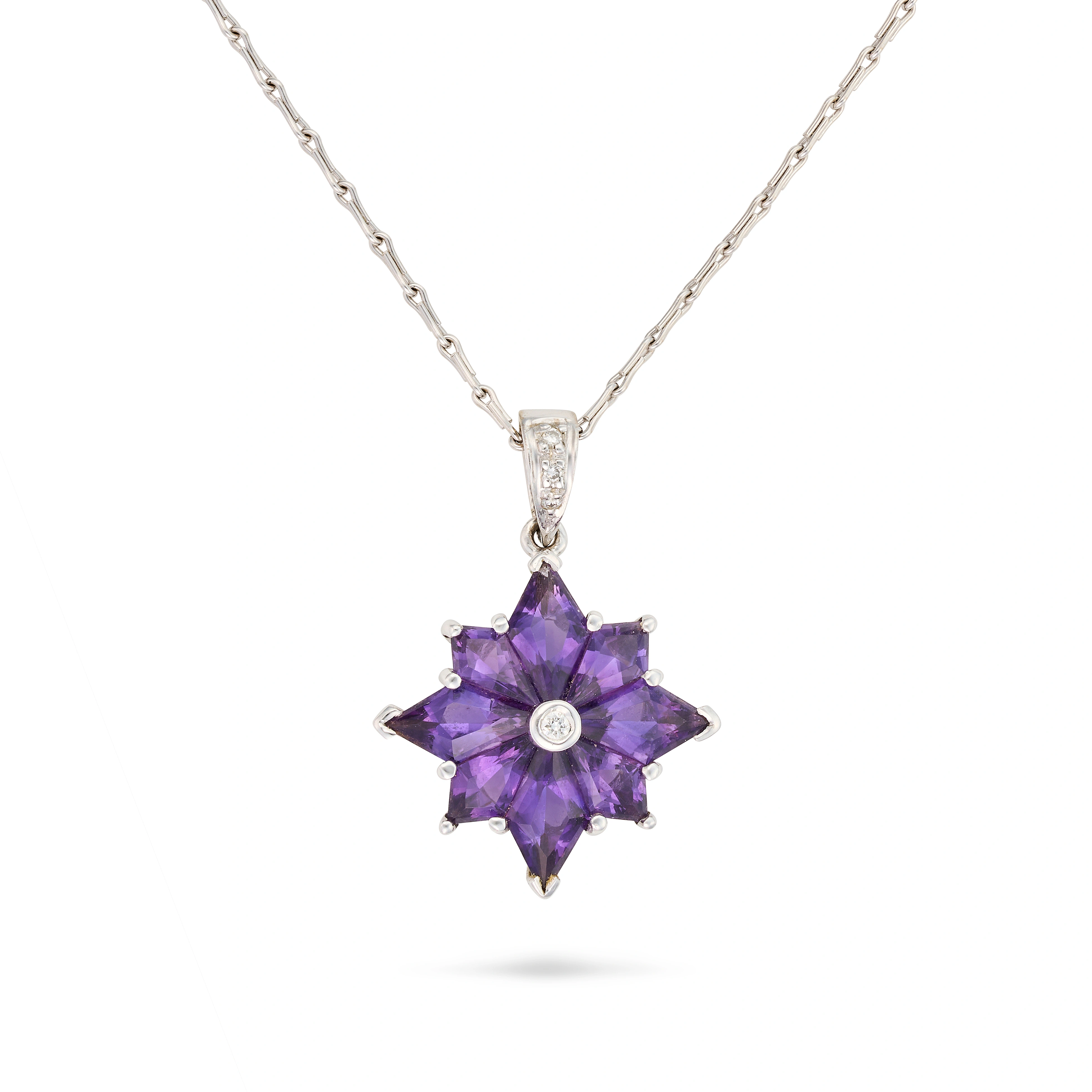 NO RESERVE - AN AMETHYST AND DIAMOND PENDANT AND C ...