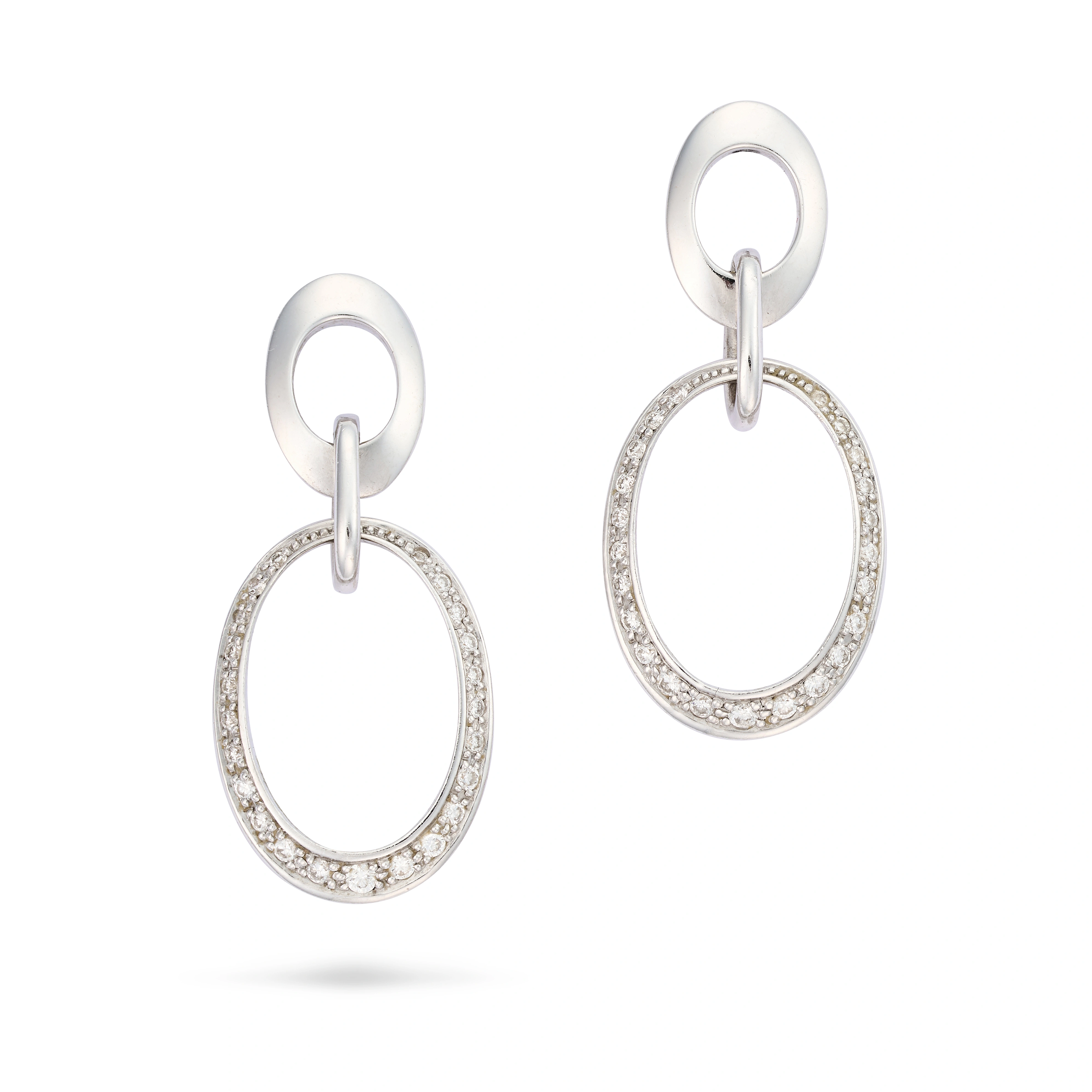 NO RESERVE - A PAIR OF DIAMOND DROP EARRINGS in 18 ...
