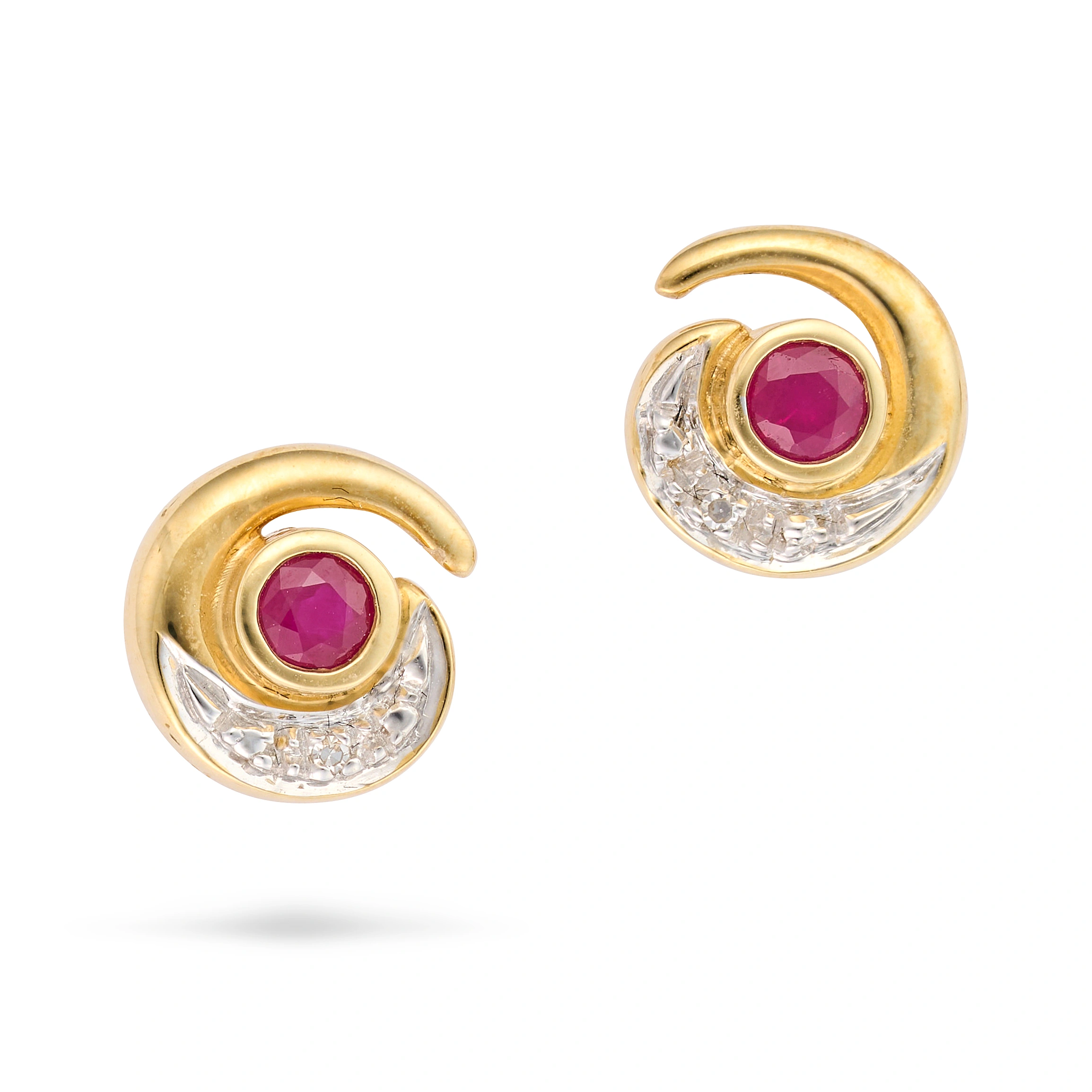 NO RESERVE - A PAIR OF RUBY AND DIAMOND STUD EARRI ...