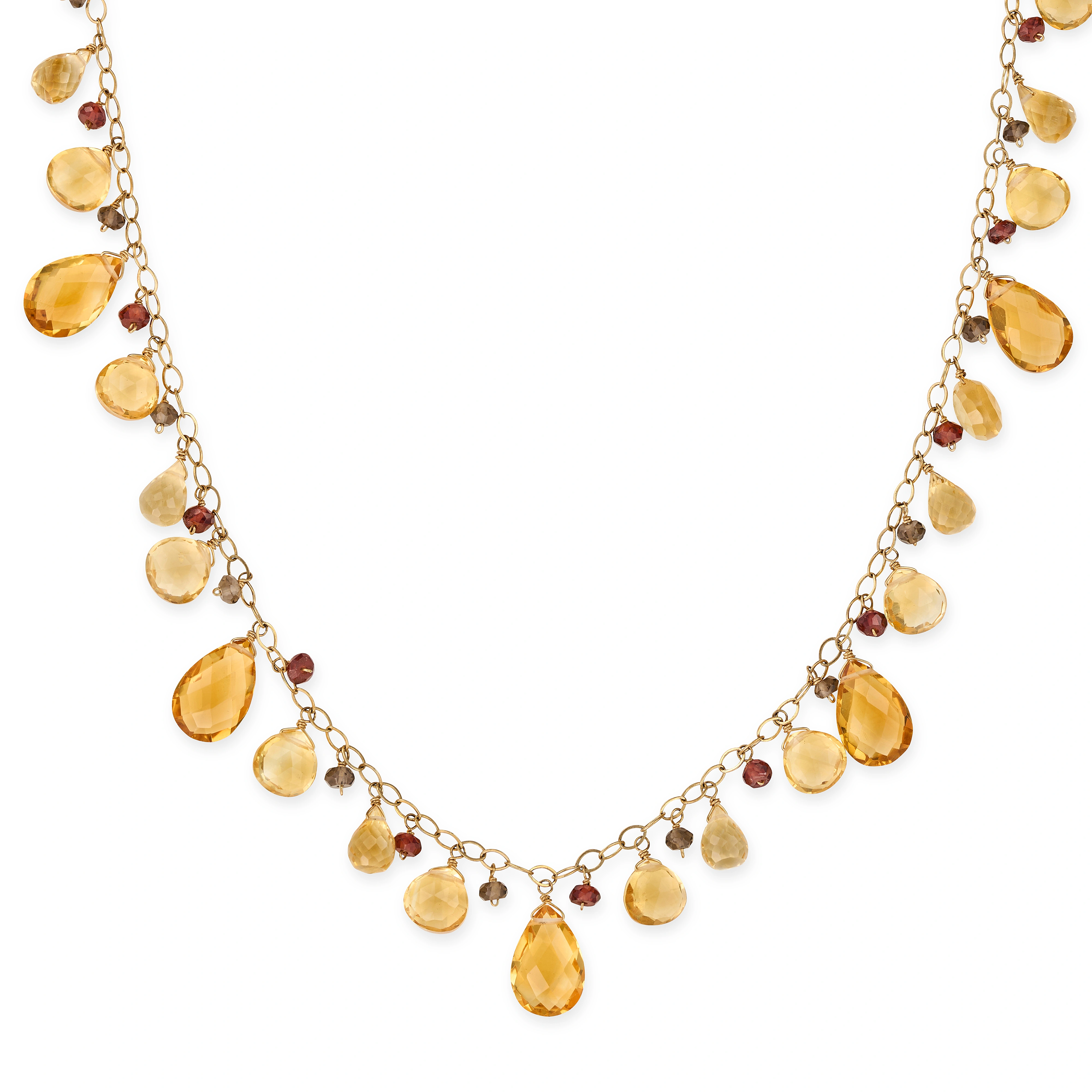 NO RESERVE - A CITRINE AND GARNET FRINGE NECKLACE ...