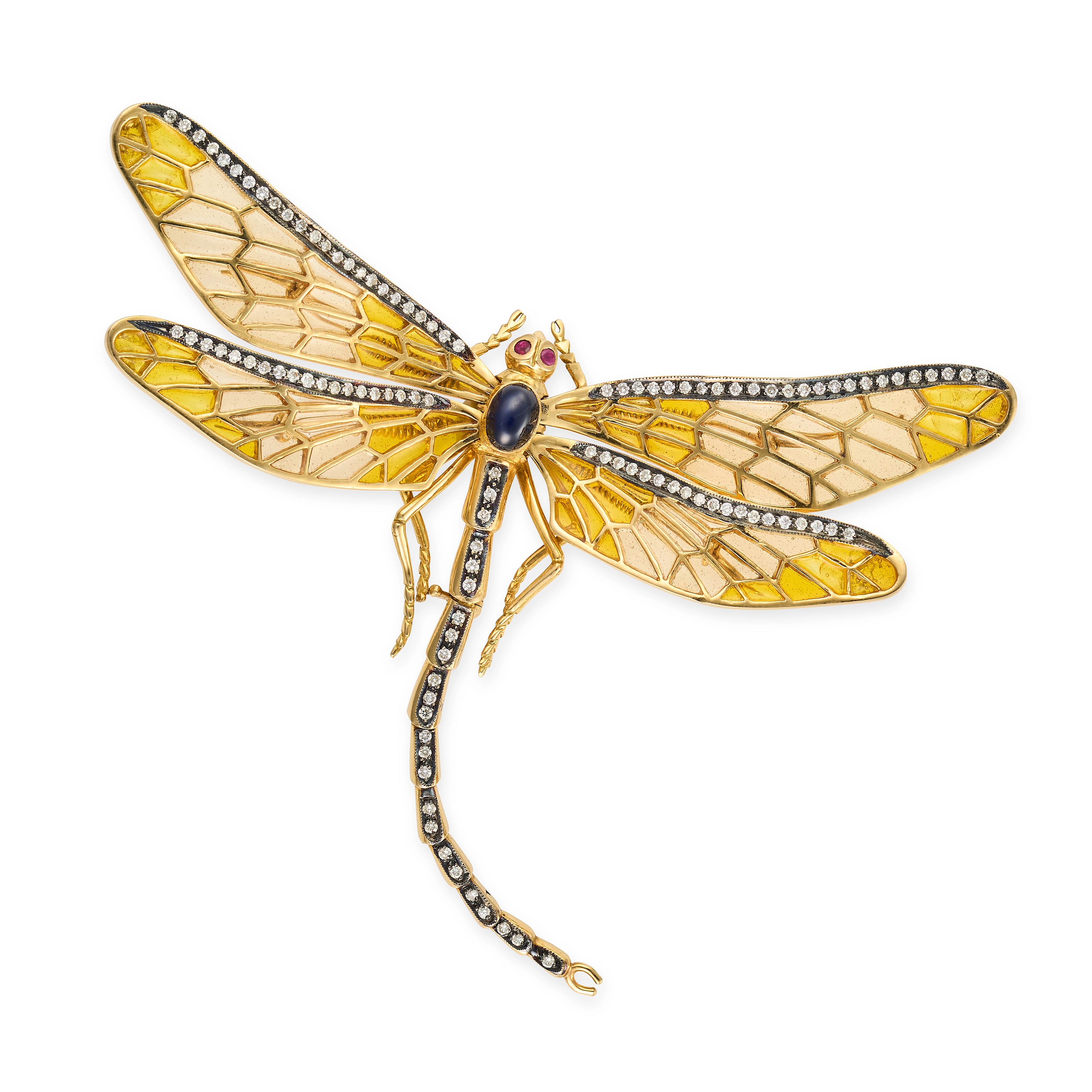 A SAPPHIRE, DIAMOND, RUBY AND PLIQUE A JOUR ENAMEL ...