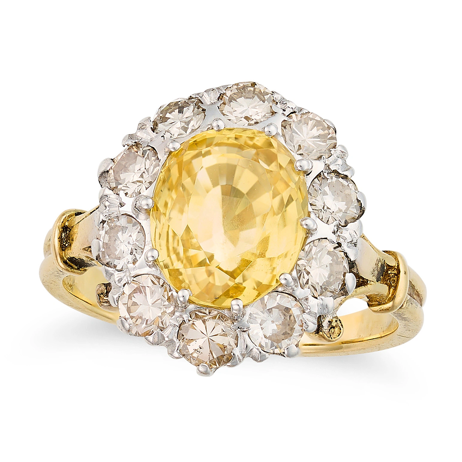 A FINE YELLOW SAPPHIRE AND DIAMOND CLUSTER RING se ...
