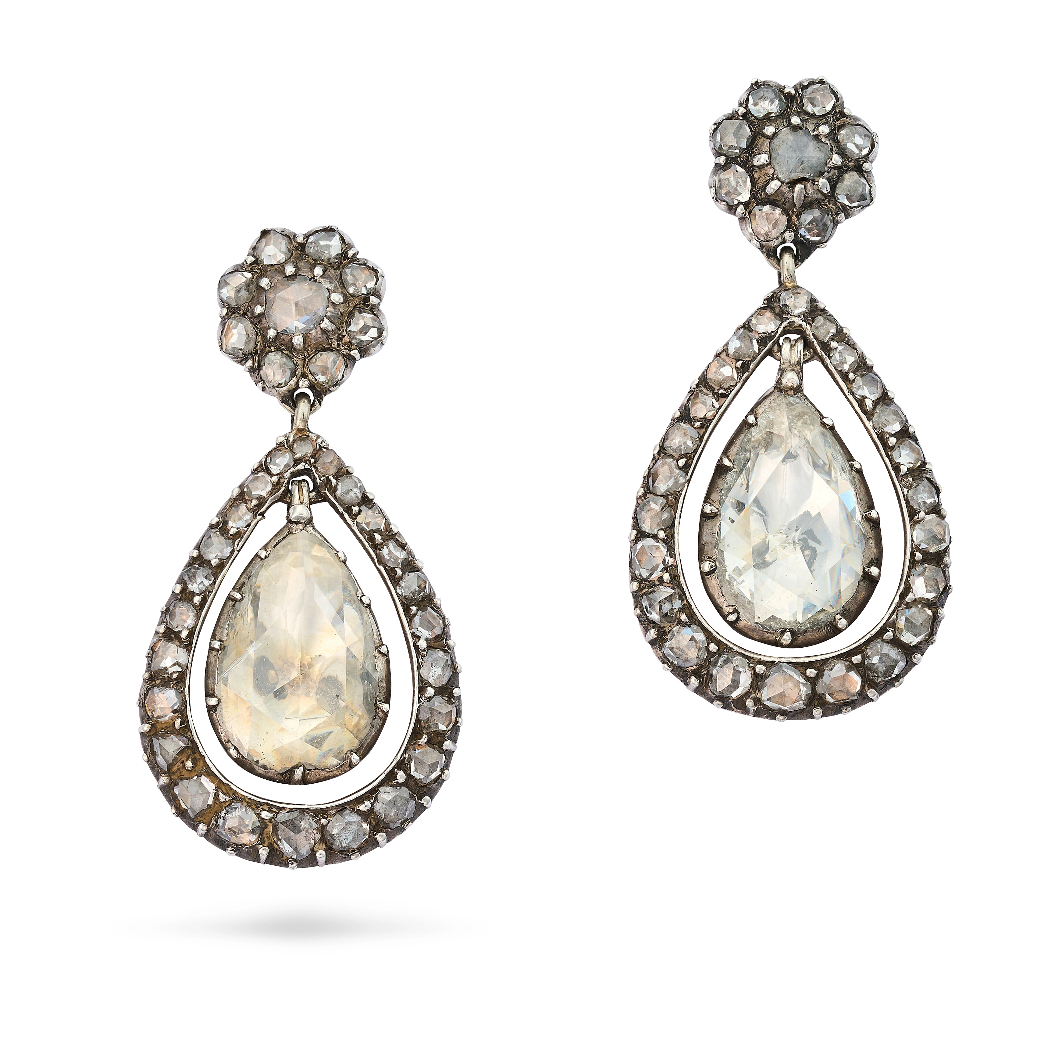 A PAIR OF FINE ANTIQUE DIAMOND DROP EARRINGS, 19TH ...