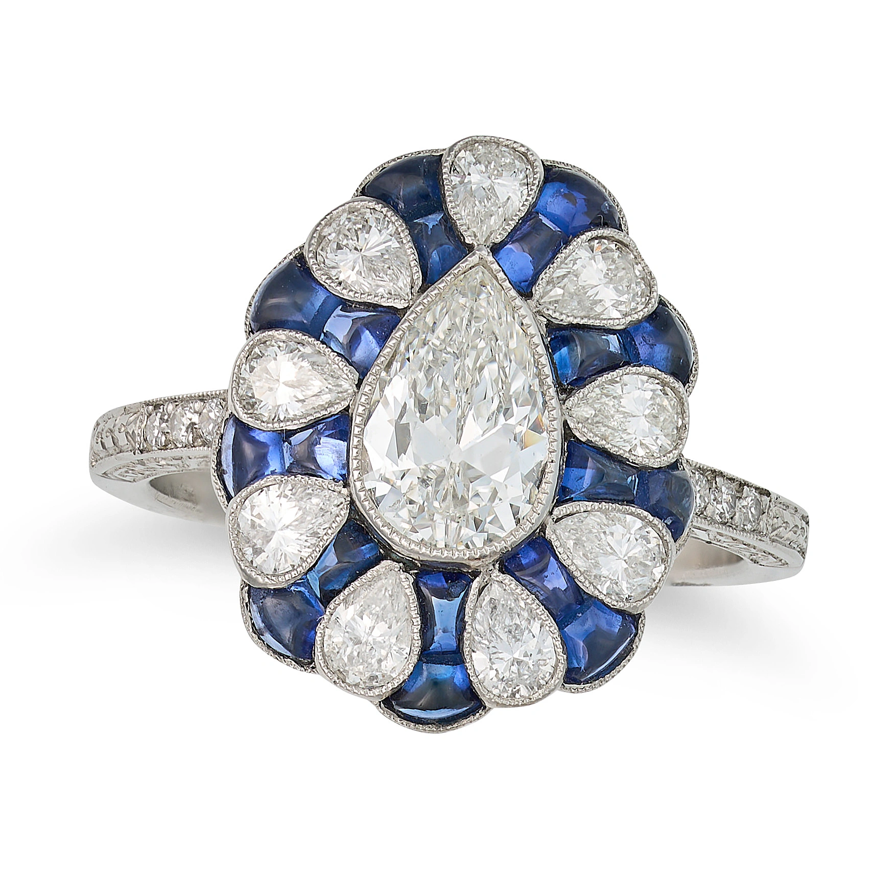 A FINE DIAMOND AND SAPPHIRE DRESS RING set with an ...