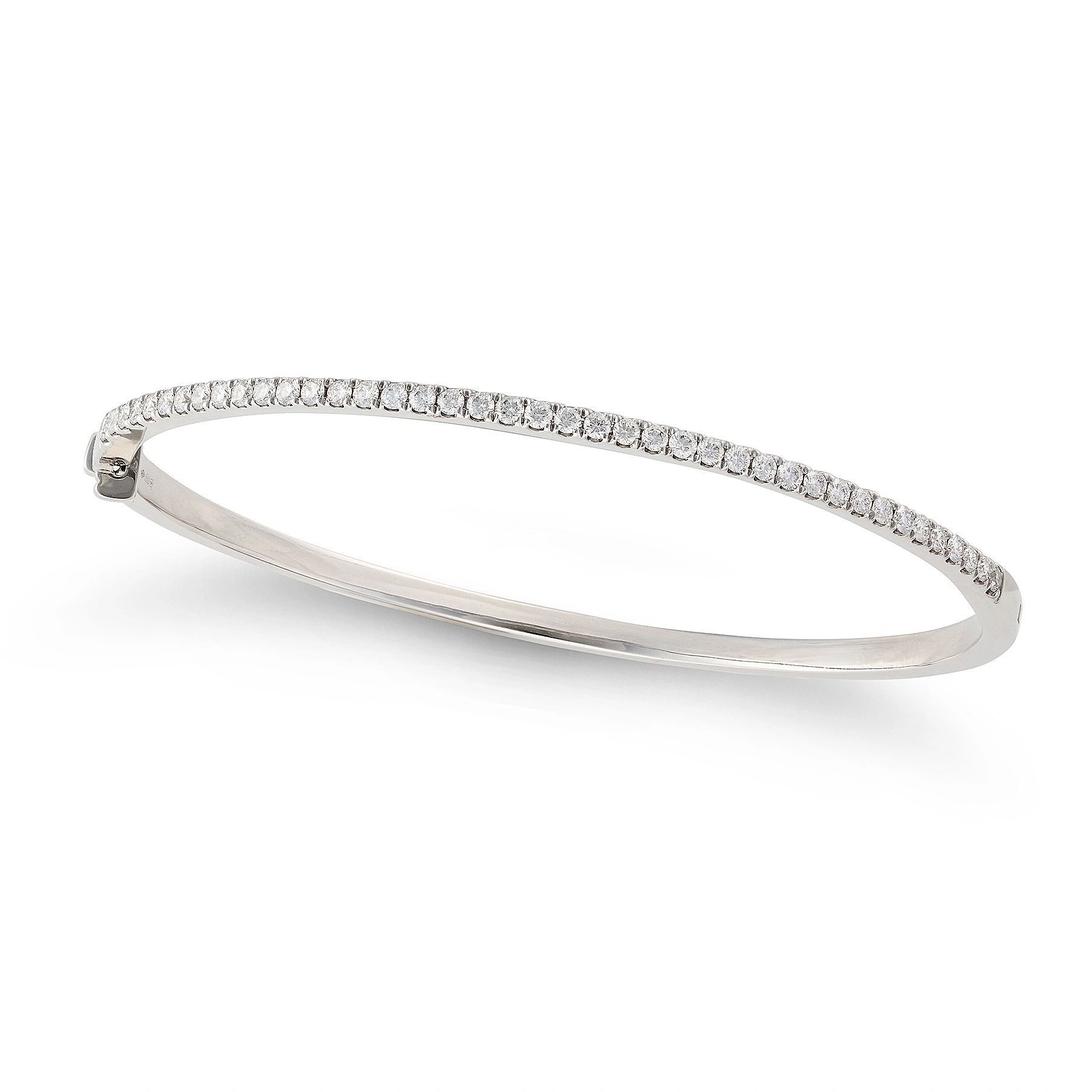 A DIAMOND BANGLE in platinum, the hinged bangle se ...