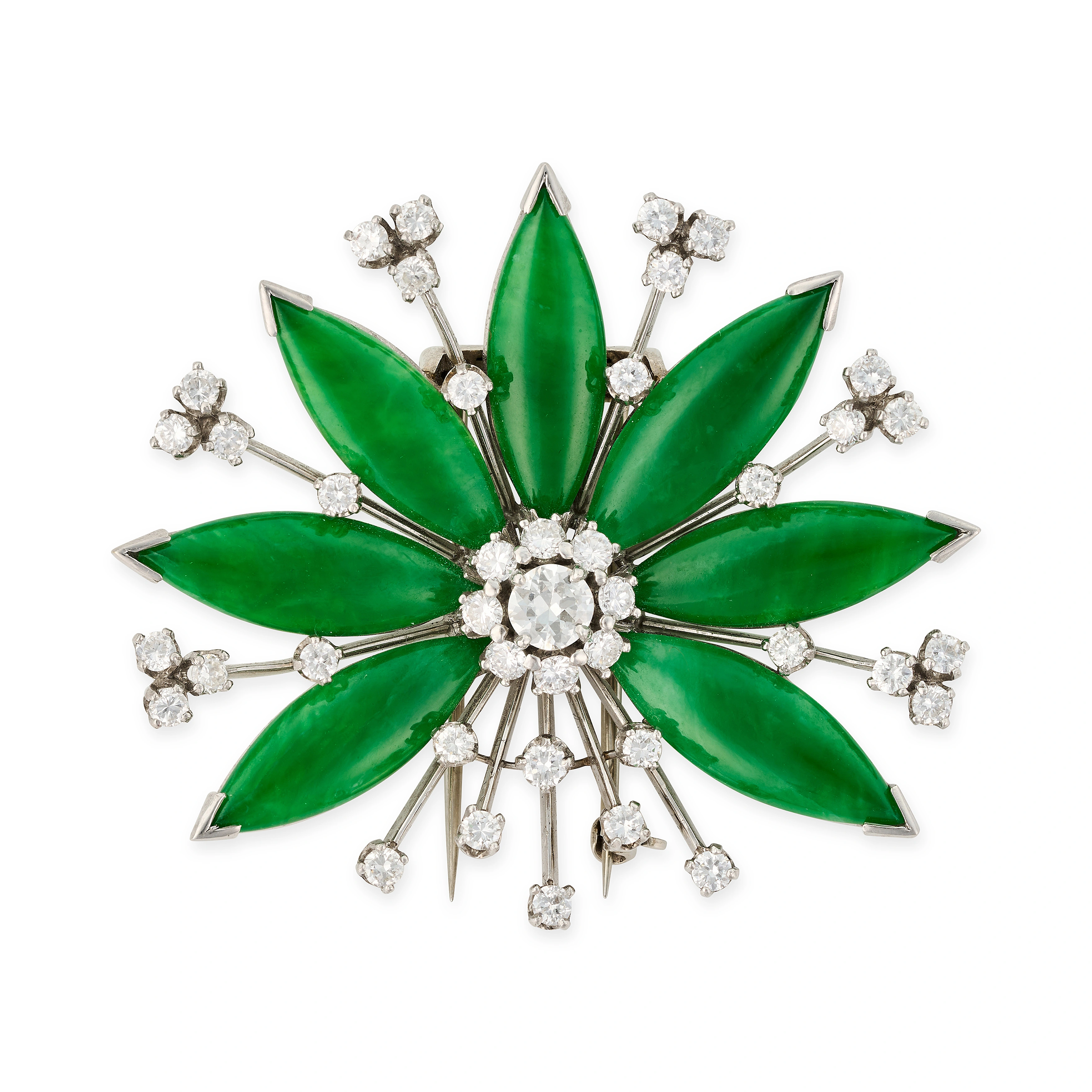 A FINE VINTAGE JADETE JADE AND DIAMOND FLOWER CLIP ...