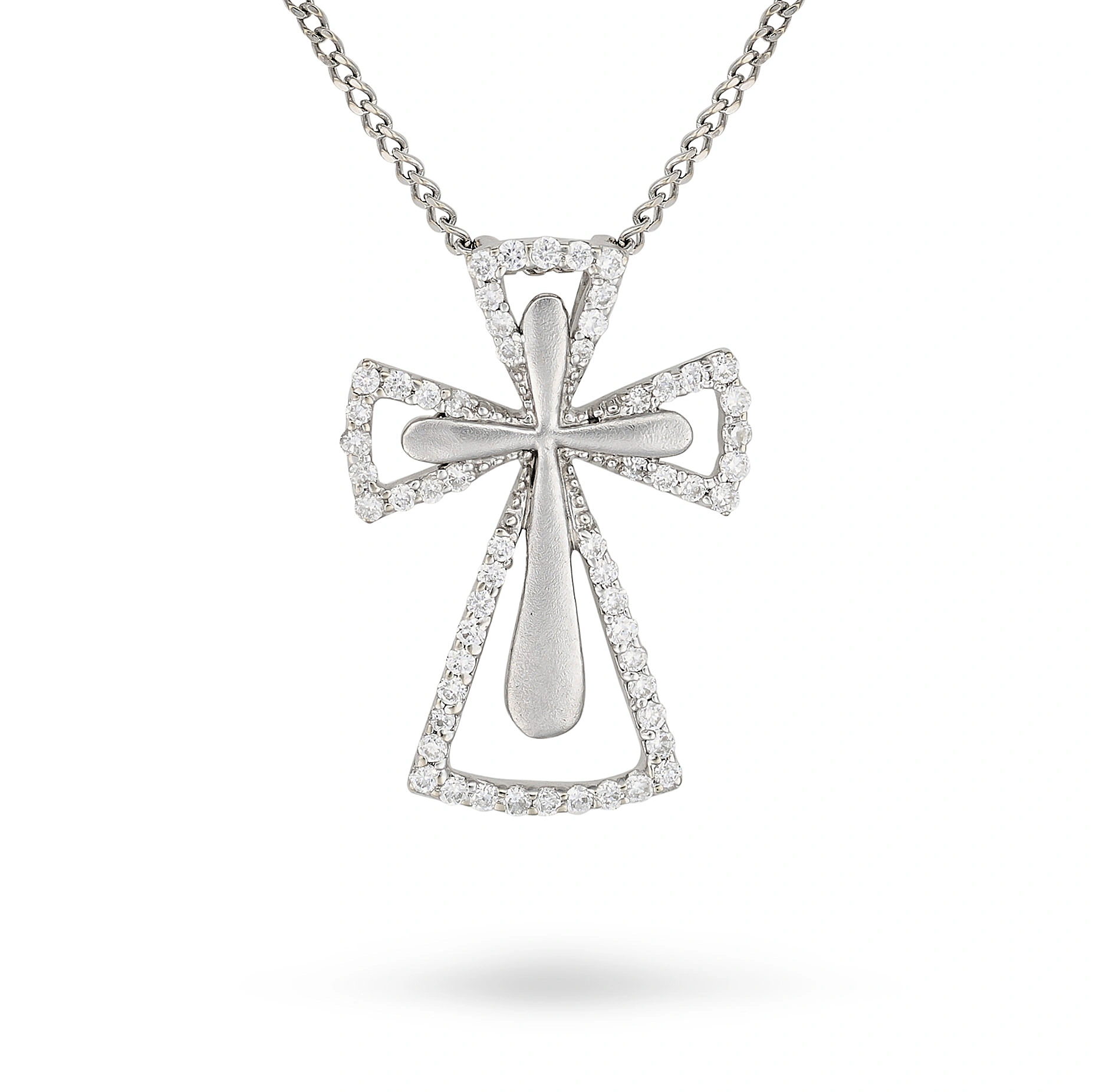 A DIAMOND CROSS PENDANT NECKLACE in 18ct white gol ...