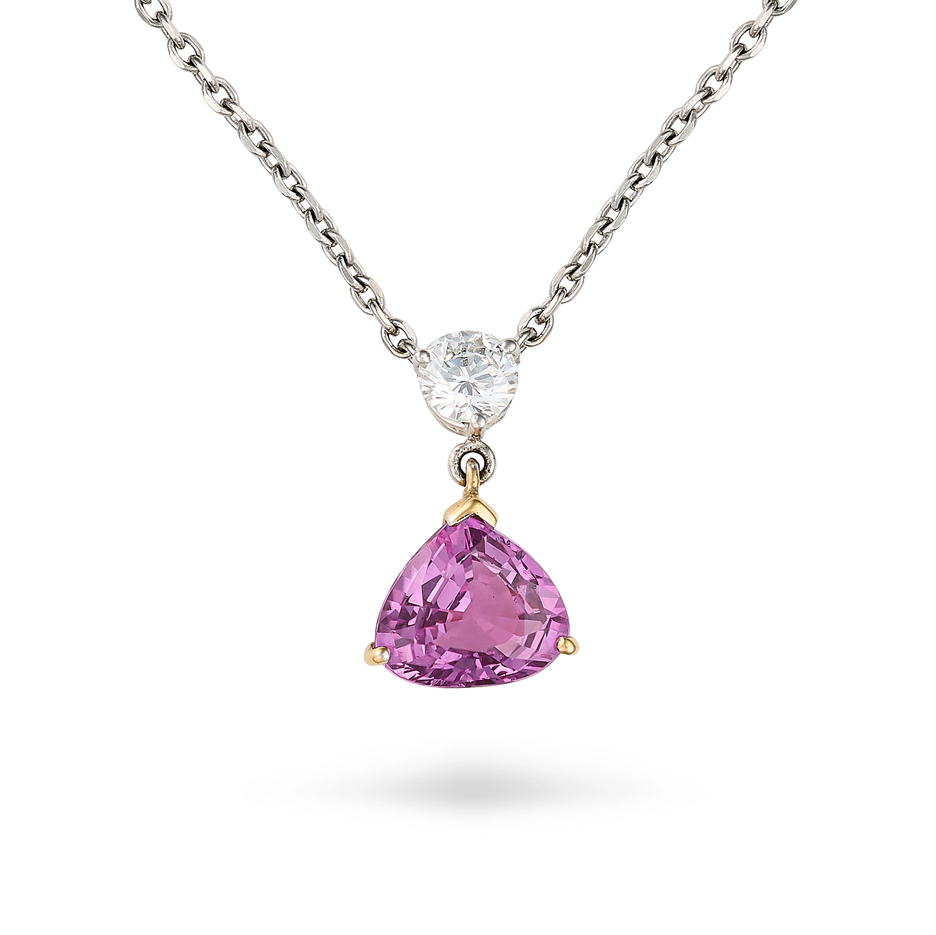 A PINK SAPPHIRE AND DIAMOND PENDANT NECKLACE set w ...