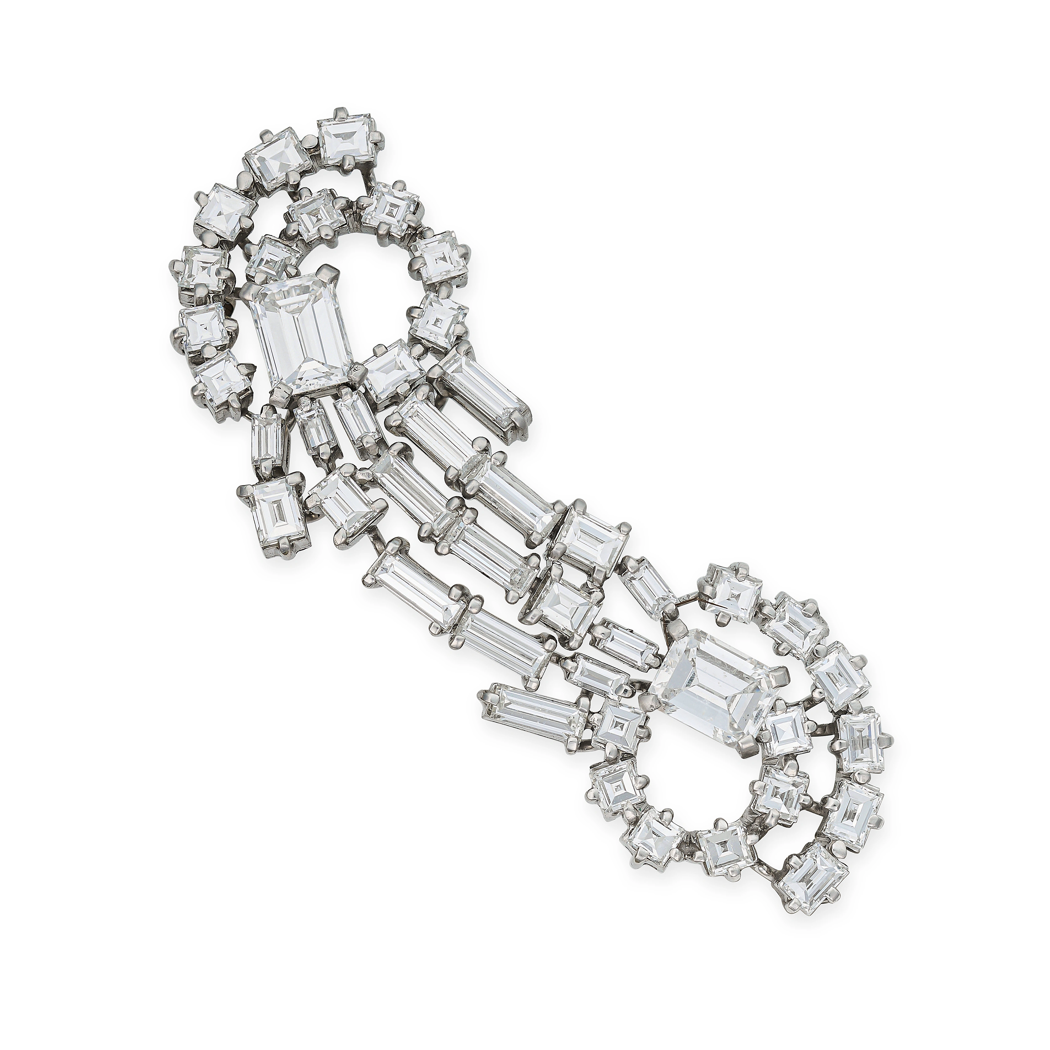 RAYMOND YARD, A MID CENTURY DIAMOND BROOCH in scro ...