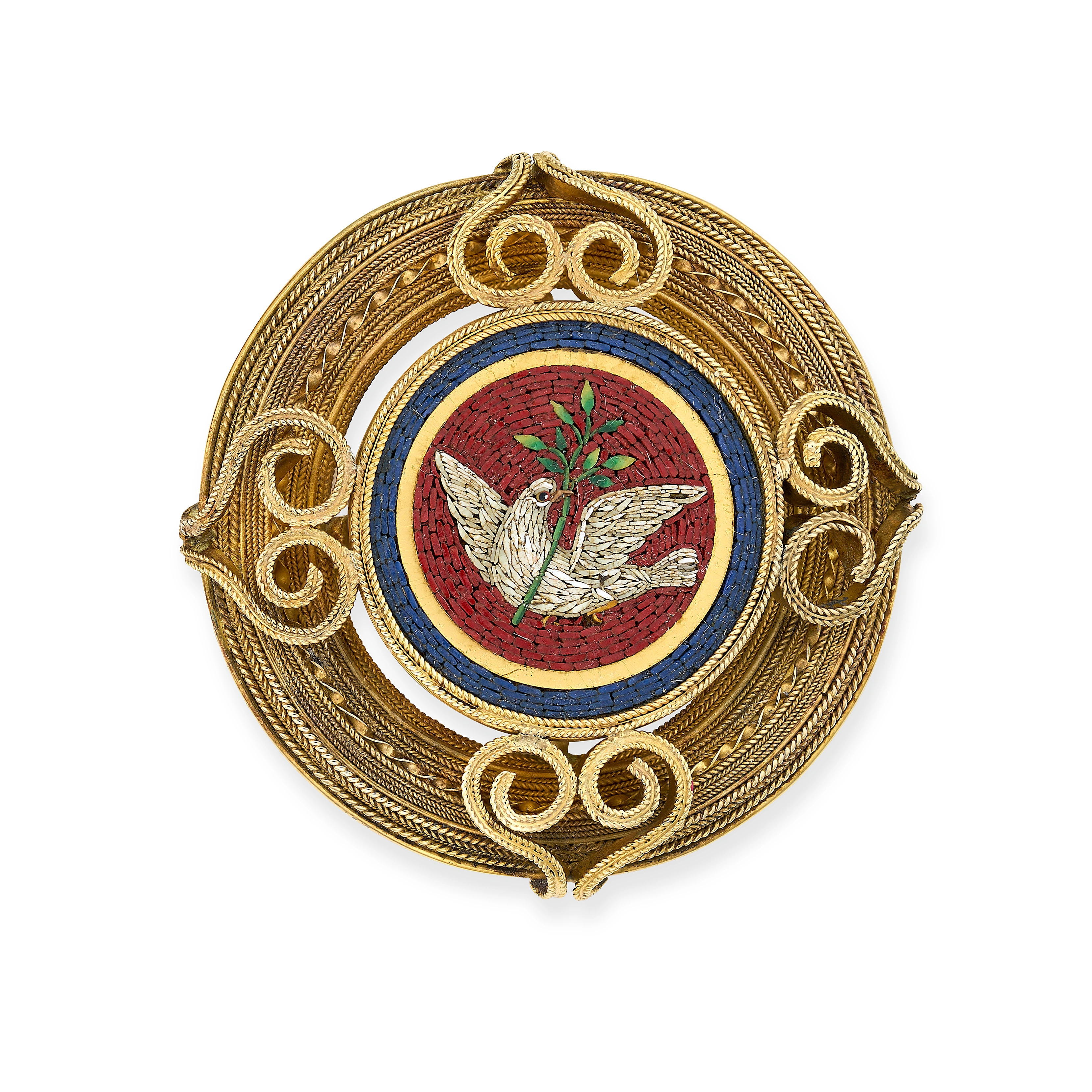 AN ANTIQUE MICROMOSAIC DOVE BROOCH in yellow gold, ...