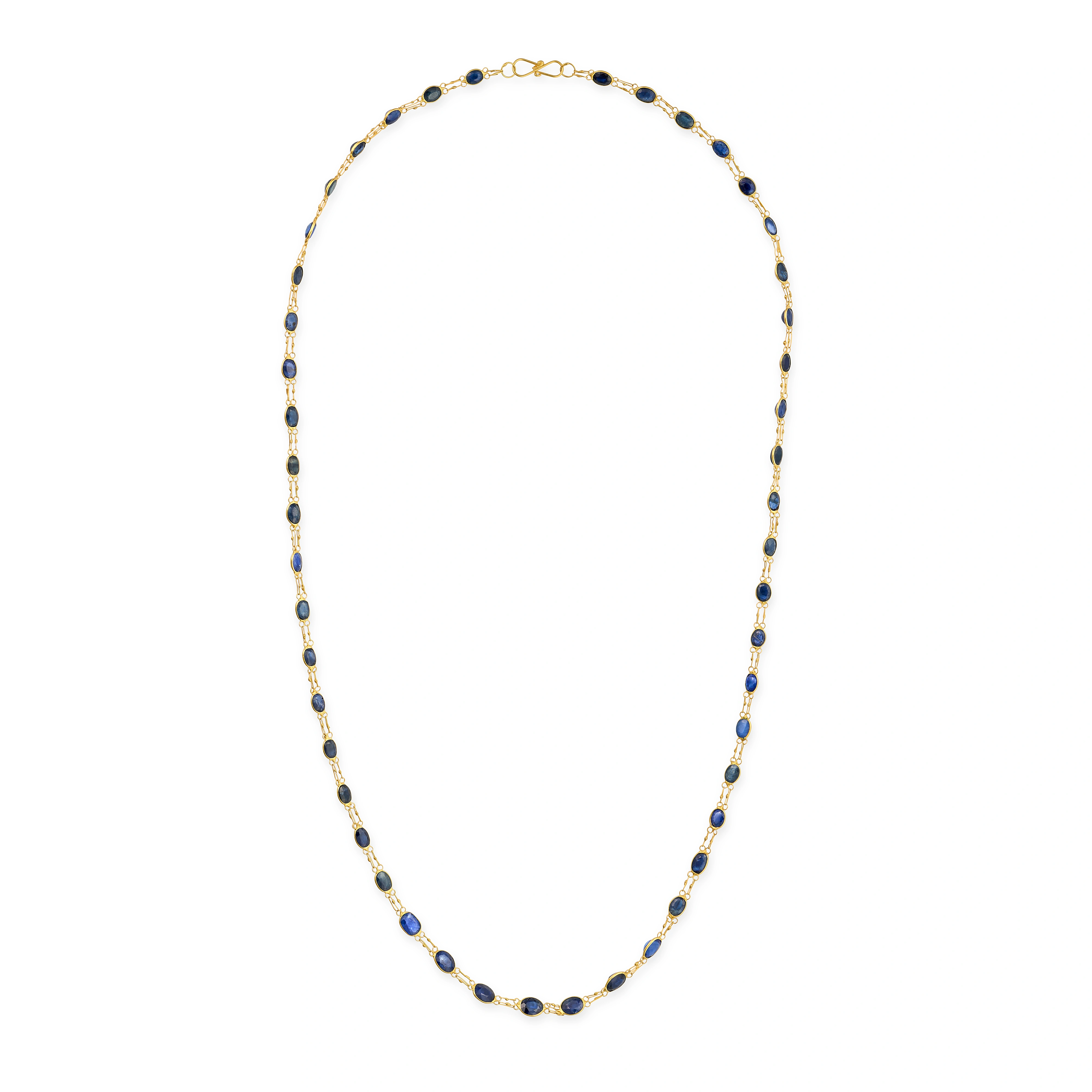A SAPPHIRE CHAIN NECKLACE comprising a row of roun ...