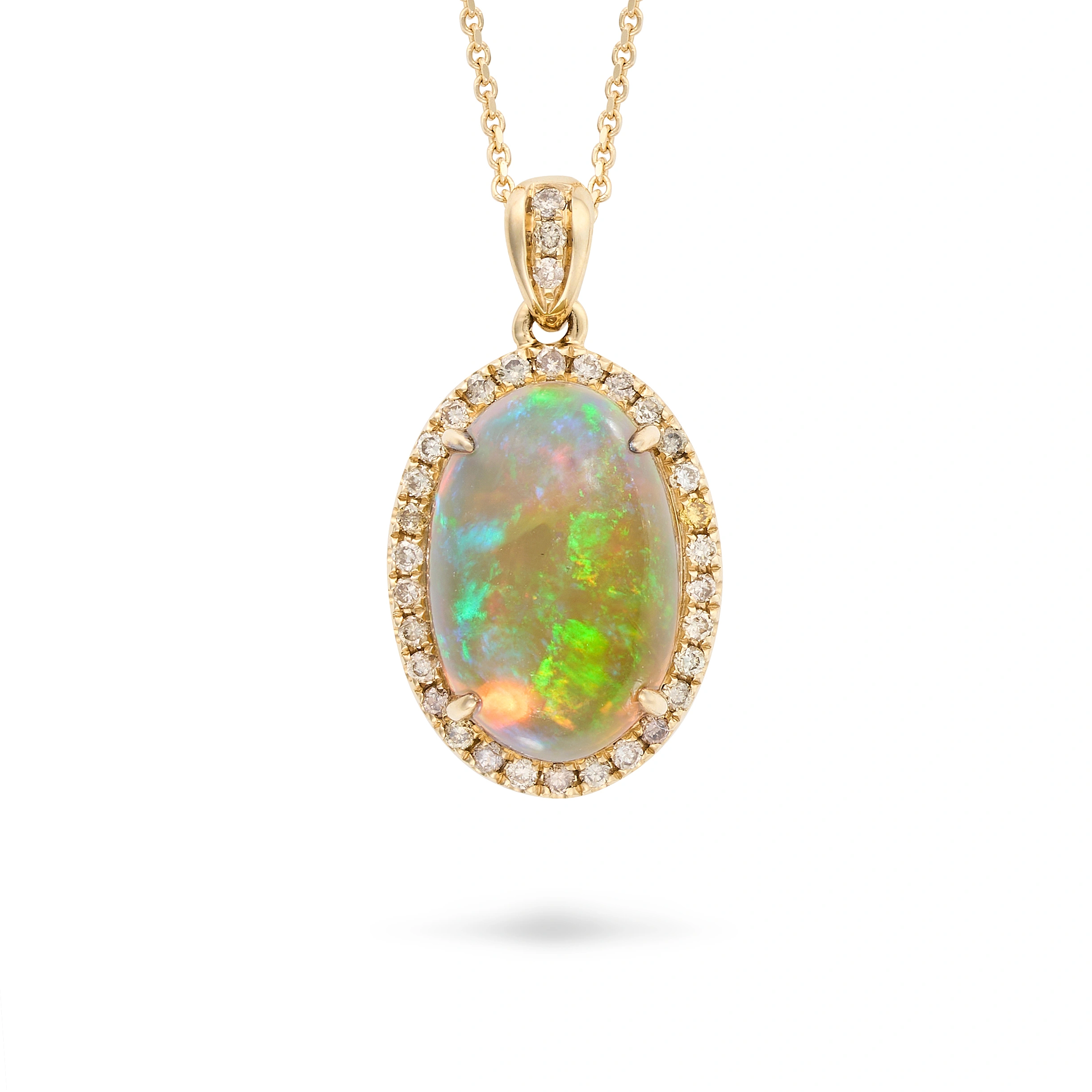 AN OPAL AND DIAMOND PENDANT NECKLACE in 14ct yello ...