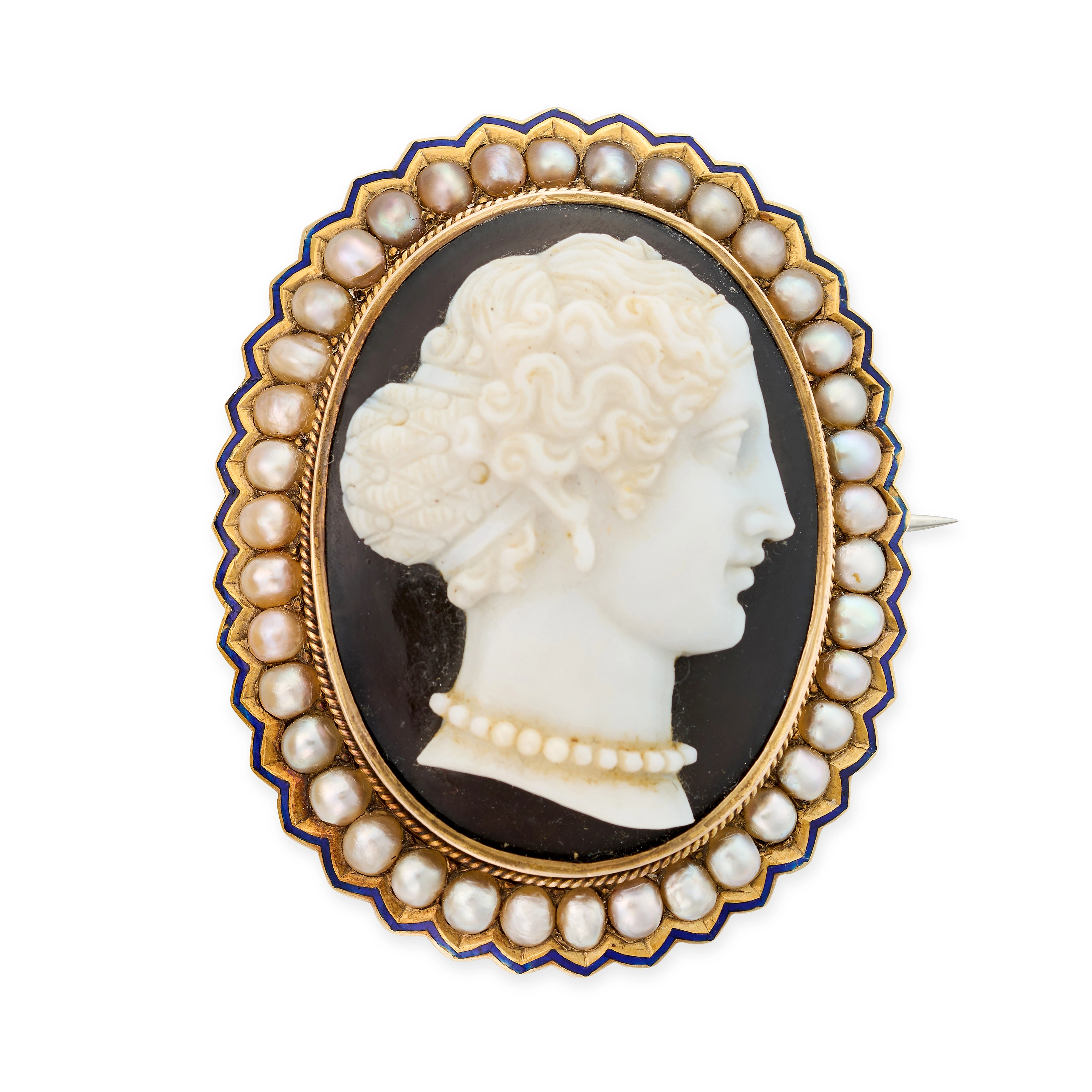NO RESERVE - A FINE ANTIQUE AGATE, PEARL AND ENAME ...