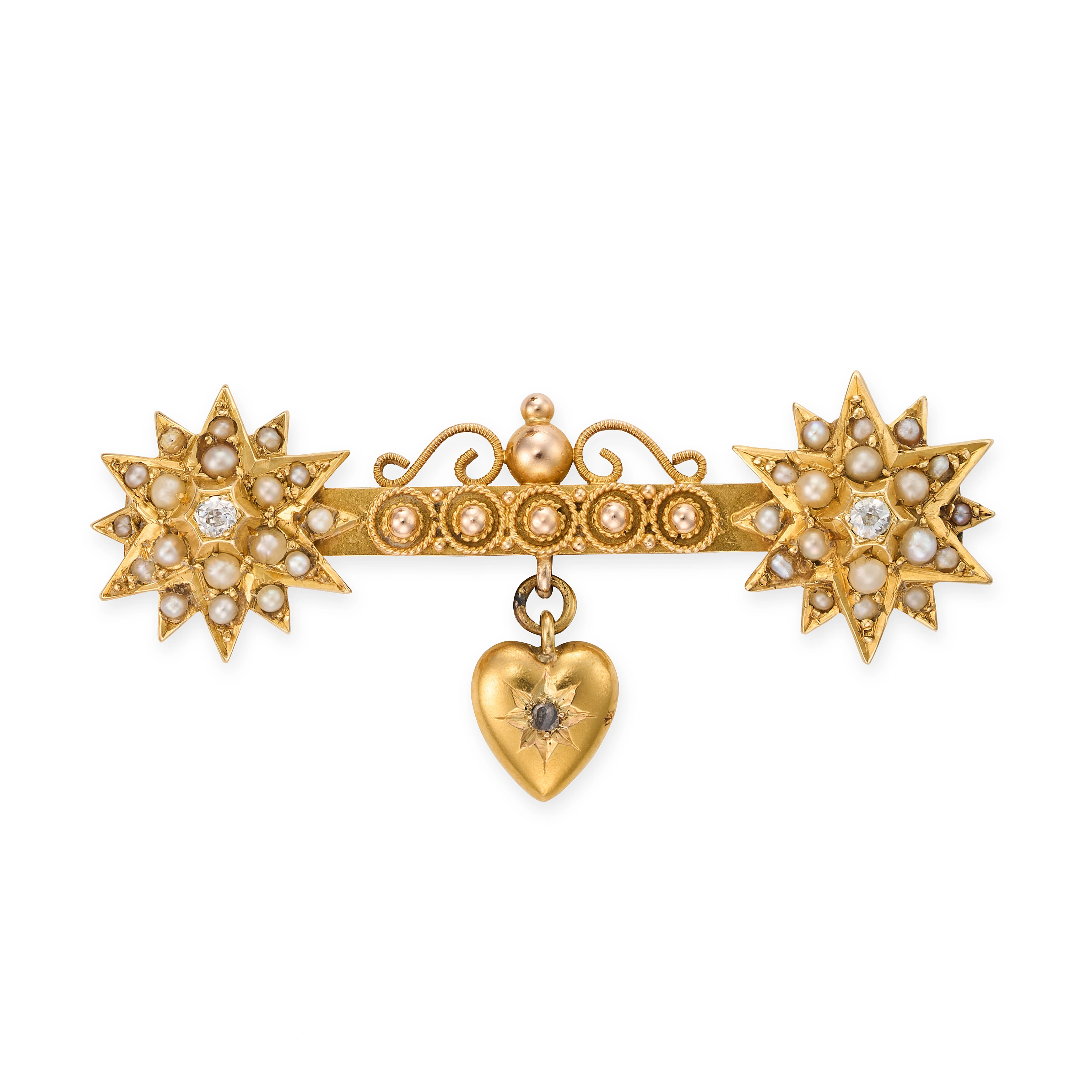 NO RESERVE - AN ANTIQUE VICTORIAN PEARL AND DIAMON ...