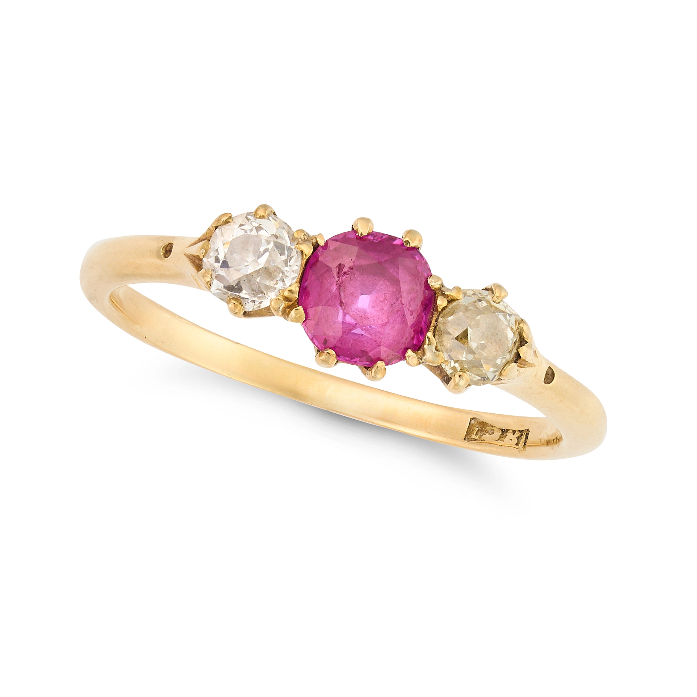 NO RESERVE - AN ANTIQUE RUBY AND DIAMOND THREE STO ...