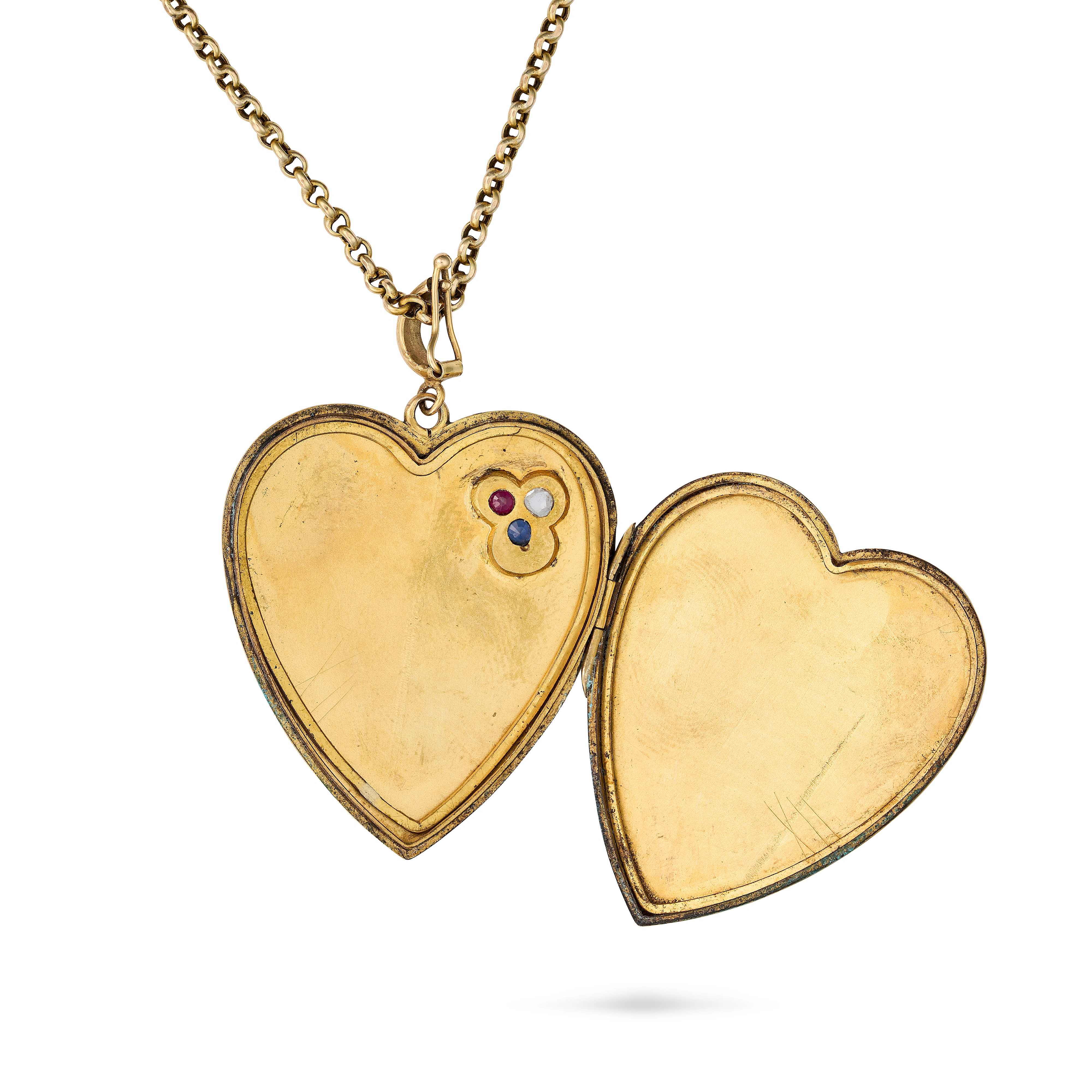 AN ANTIQUE RUBY, SAPPHIRE AND DIAMOND HEART LOCKET ...